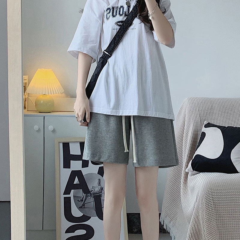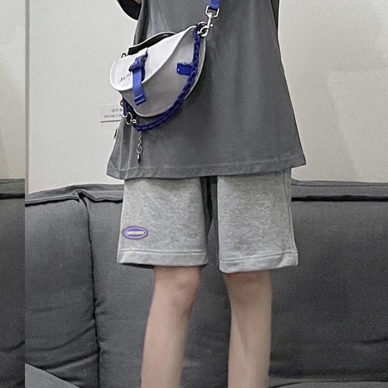 灰色运动短裤女夏季2025新款高腰显瘦宽松直筒bf风港味中裤五分裤