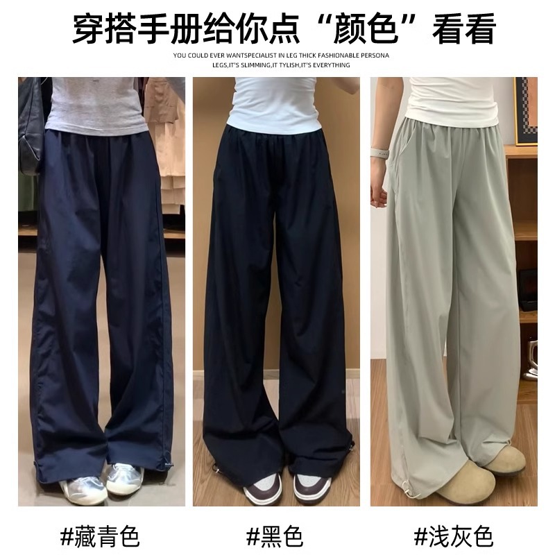 美式速干工装裤女夏季薄款2025新款酷飒风高腰直筒复古阔腿运动裤