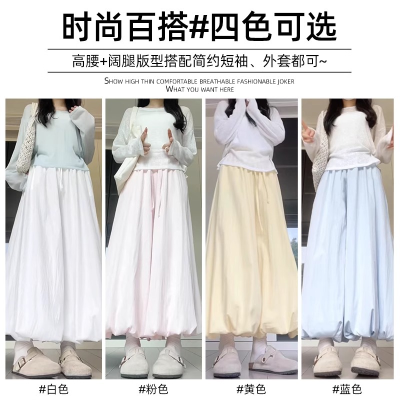 白色花苞裙裤女夏季薄款2025新款高腰灯笼裤宽松慵懒感休闲阔腿裤