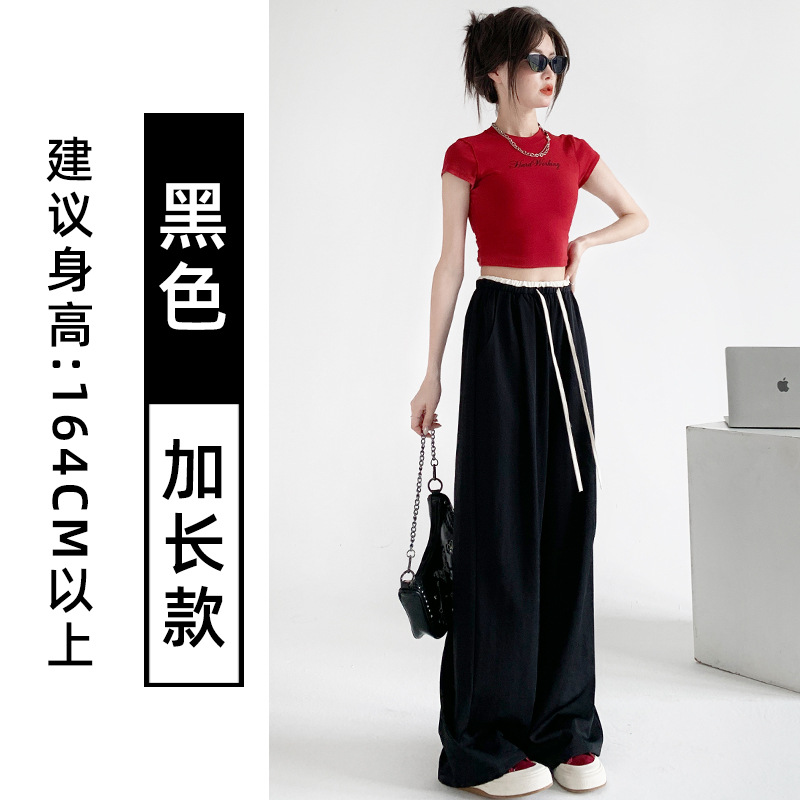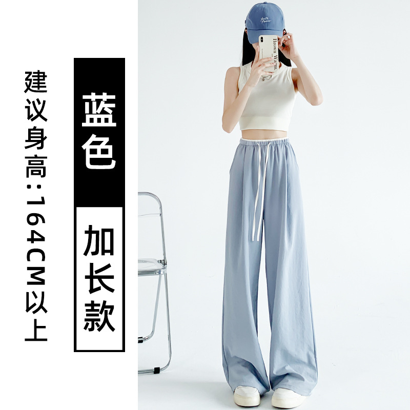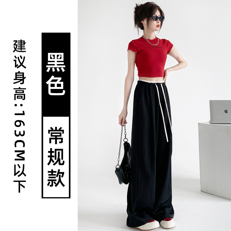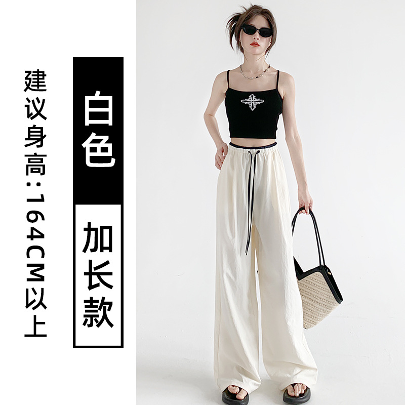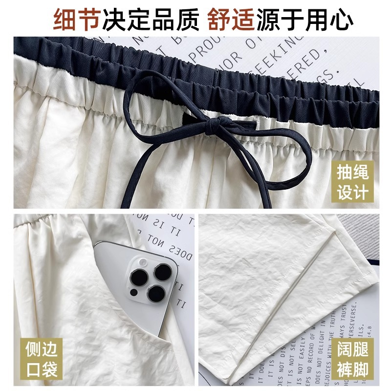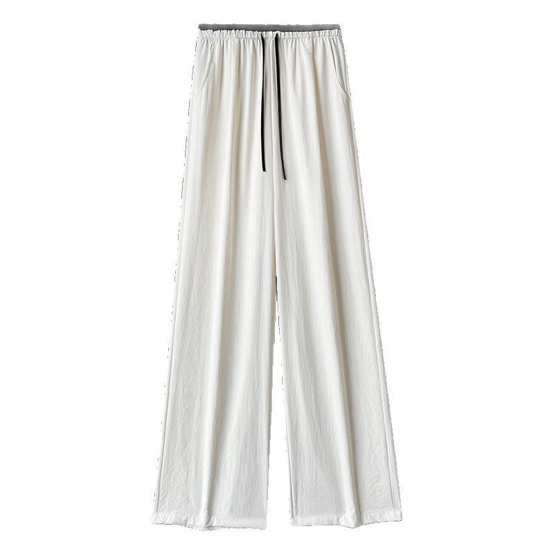 白色阔腿裤女夏季薄款2025新款高腰宽松肌理感撞色冰丝直筒休闲裤