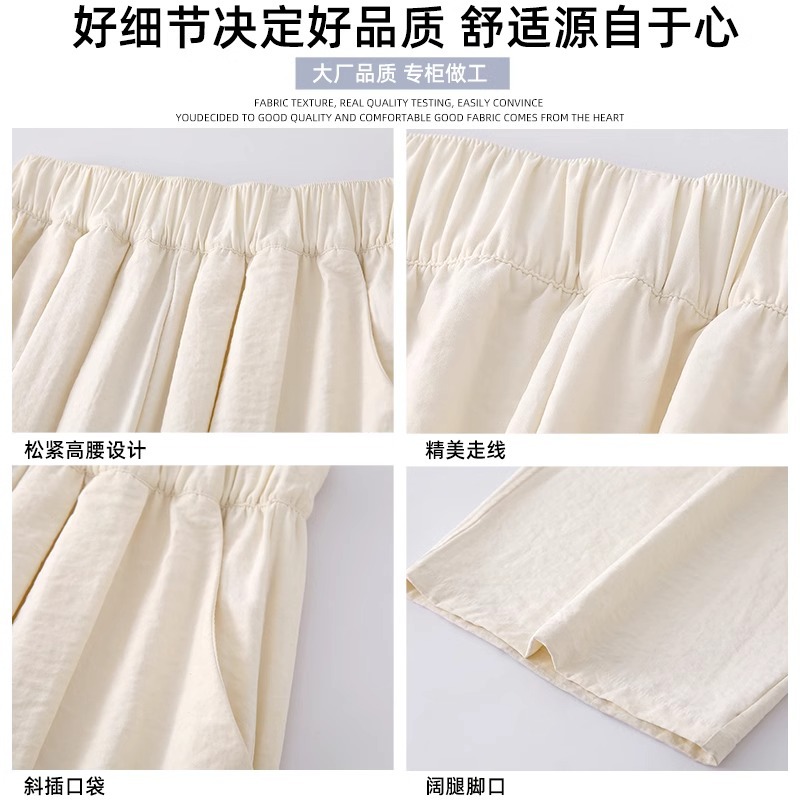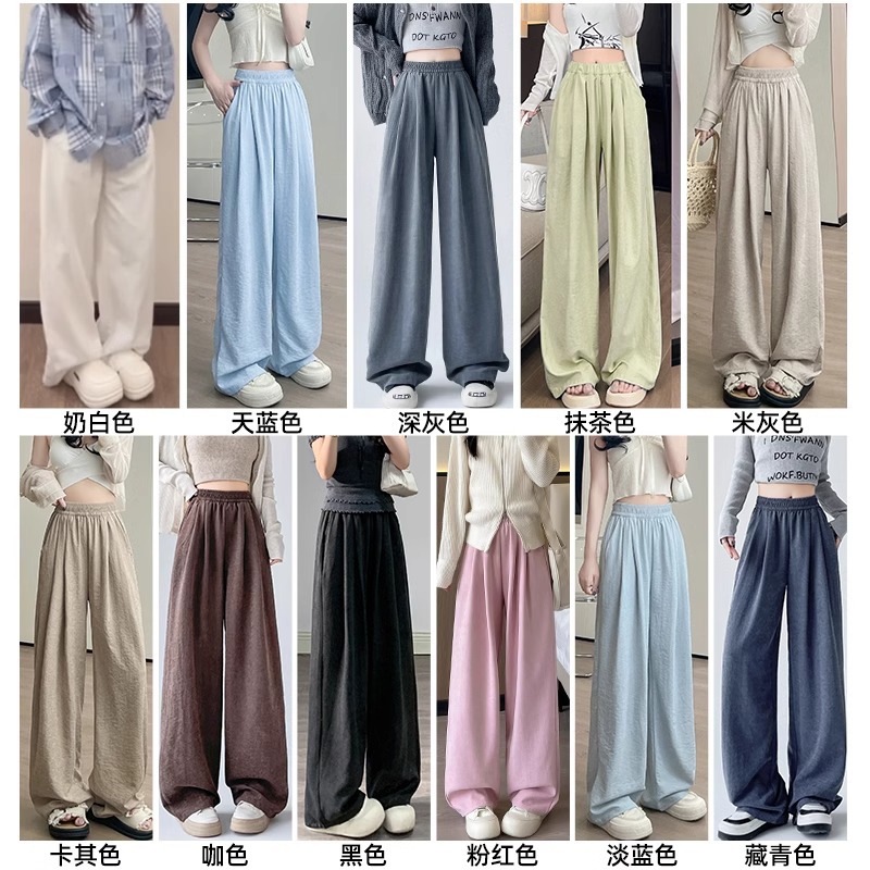 白色奶芙山本裤女2025夏季新款高腰窄版小个子松弛感冰丝拖地裤子