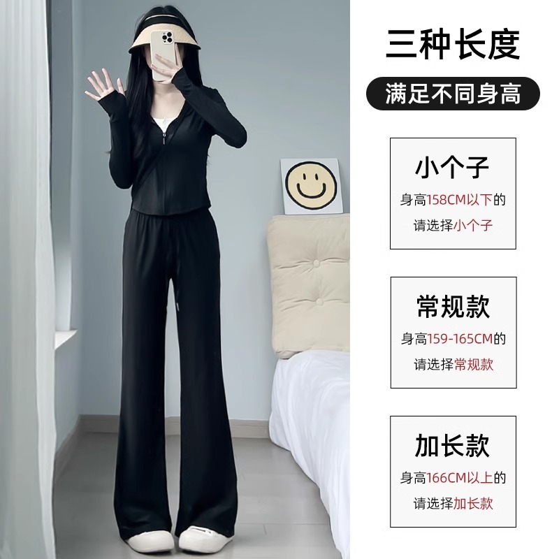 灰色冰丝防晒喇叭裤女夏季薄款2025新款高腰修身显瘦松弛感微喇裤