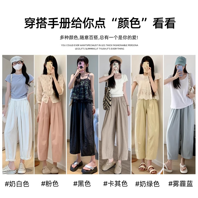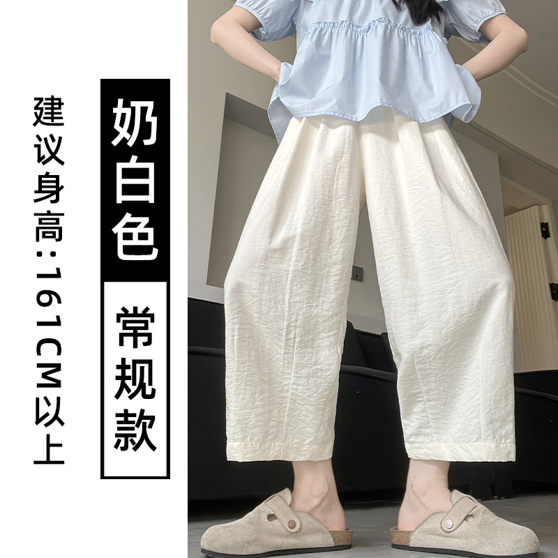 白色奶奶裤女夏季高腰宽松小个子九分休闲裤薄款哈伦冰丝萝卜裤子