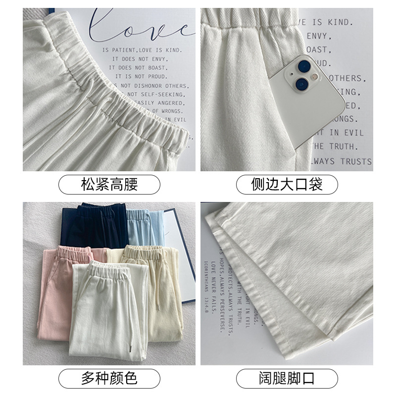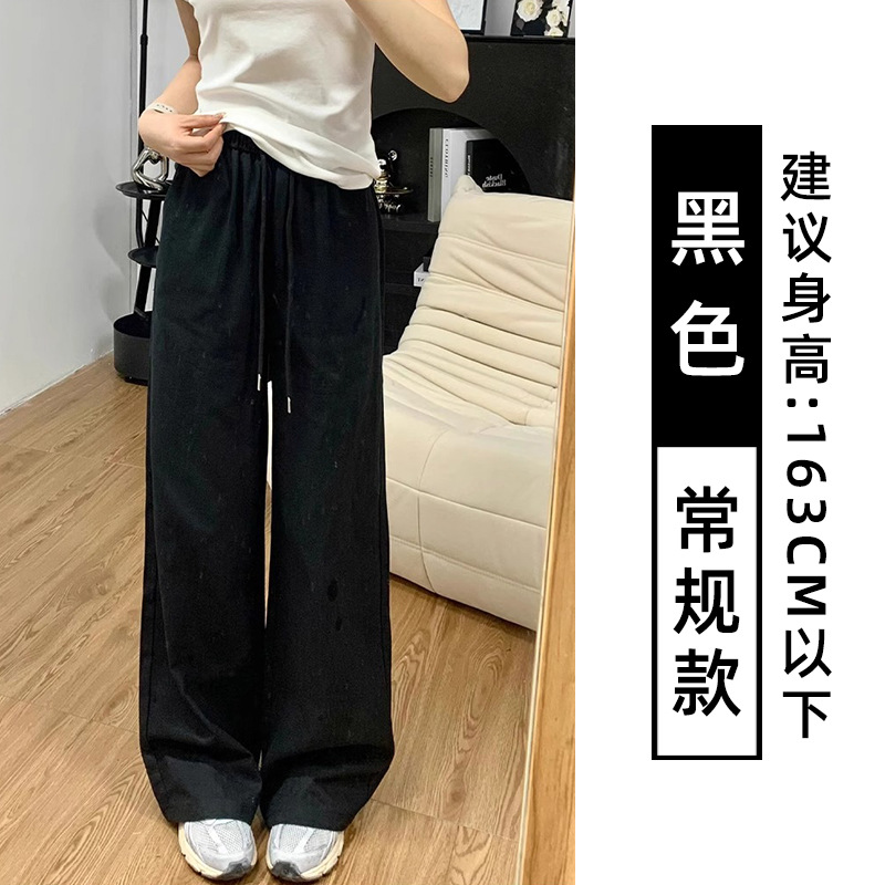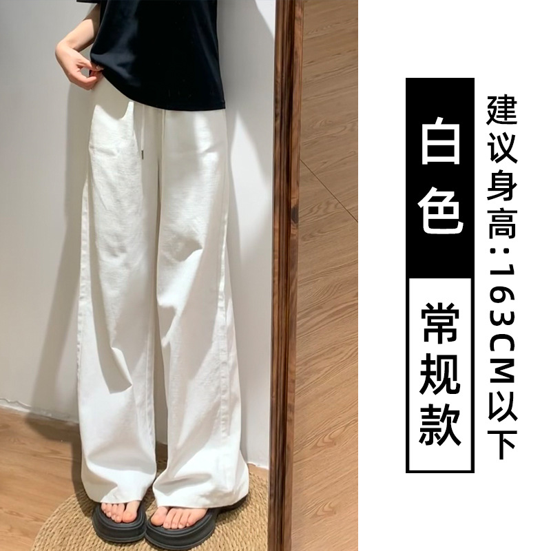 白色棉麻阔腿裤女2025夏季新款高腰垂感显瘦小个子休闲直筒牛仔裤