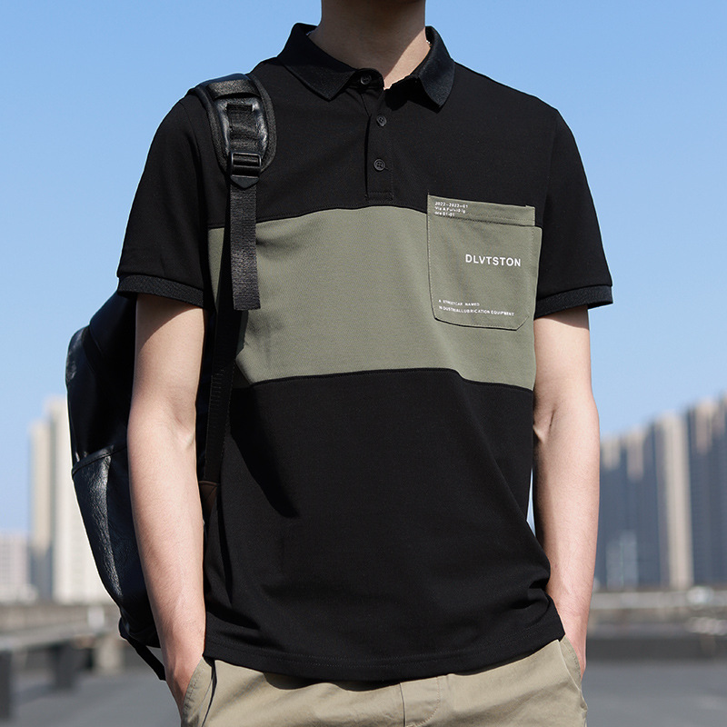 翻领polo衫男士短袖t恤男夏季新款潮流口袋复古半袖体恤宽松上衣
