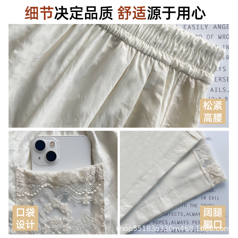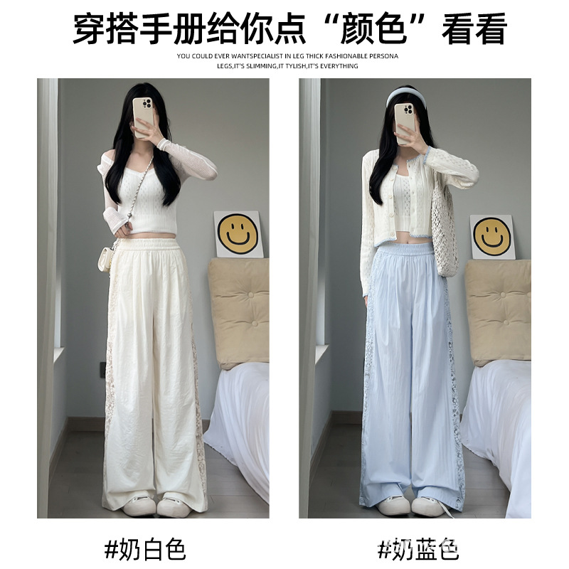 蕾丝拼接镂空阔腿裤女春夏2025新款高腰设计感宽松显瘦冰丝休闲裤