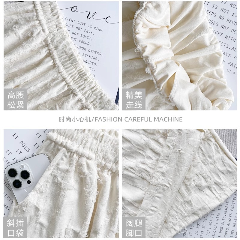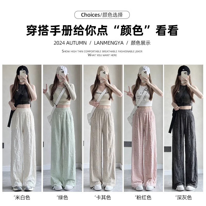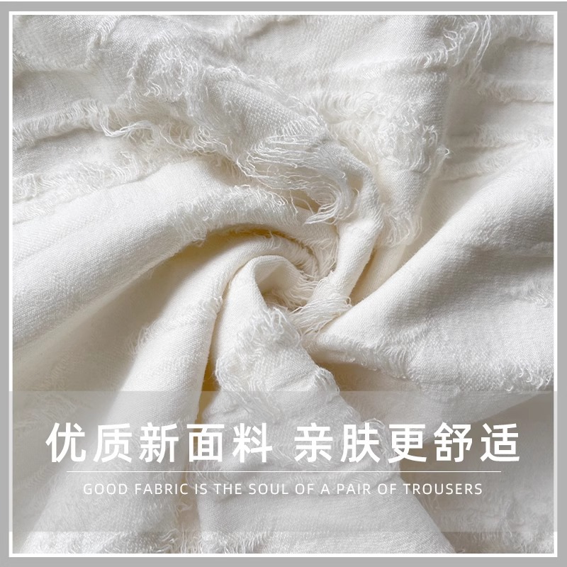 白色破洞阔腿裤女夏季2025新款设计感高腰垂感显瘦直筒休闲拖地裤