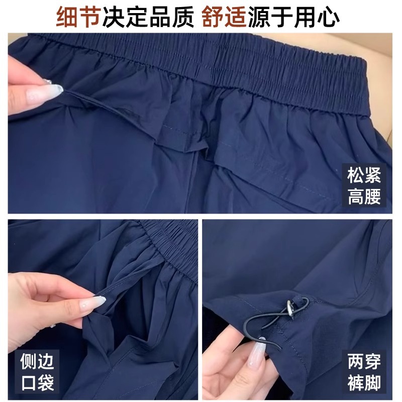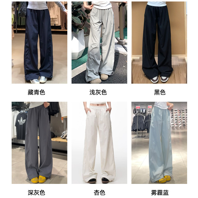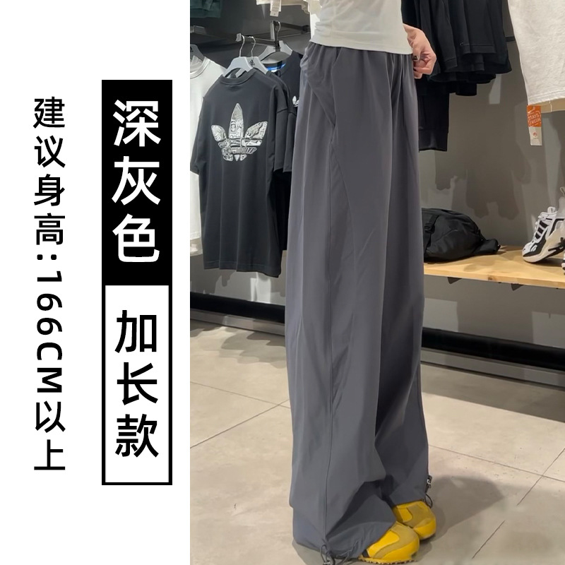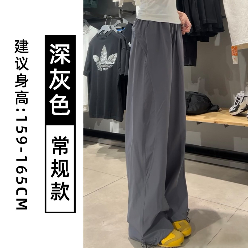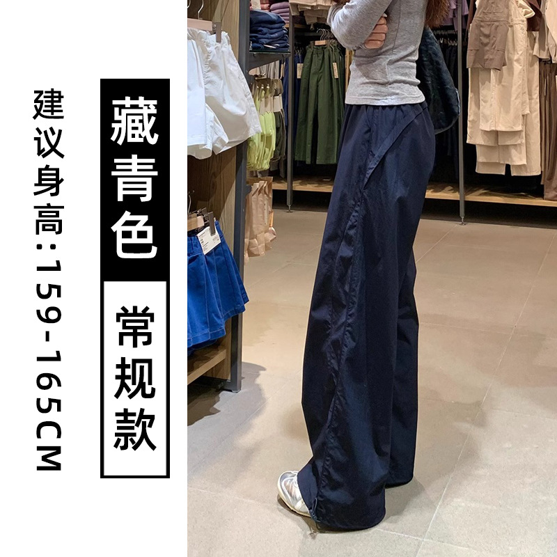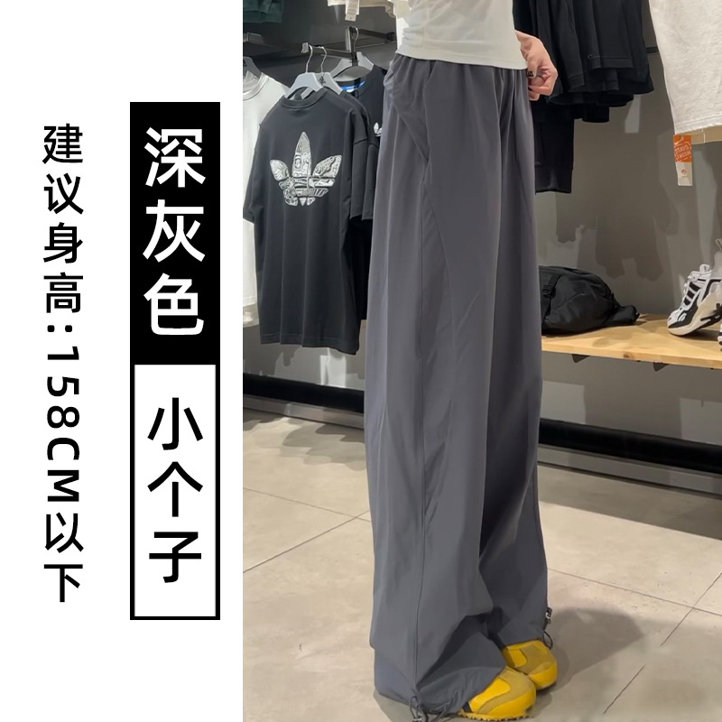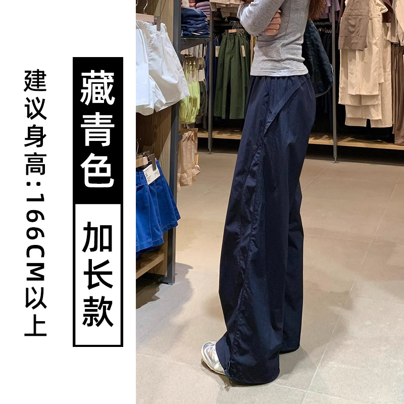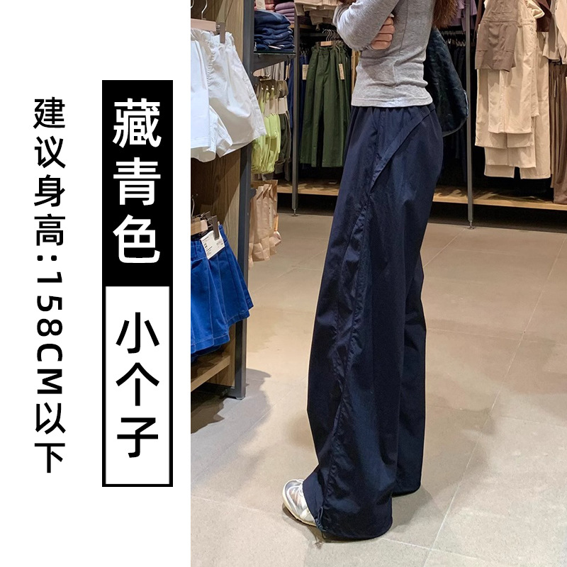 藏青色速干工装裤女夏季薄款美式宽松直筒阔腿裤小个子休闲运动裤