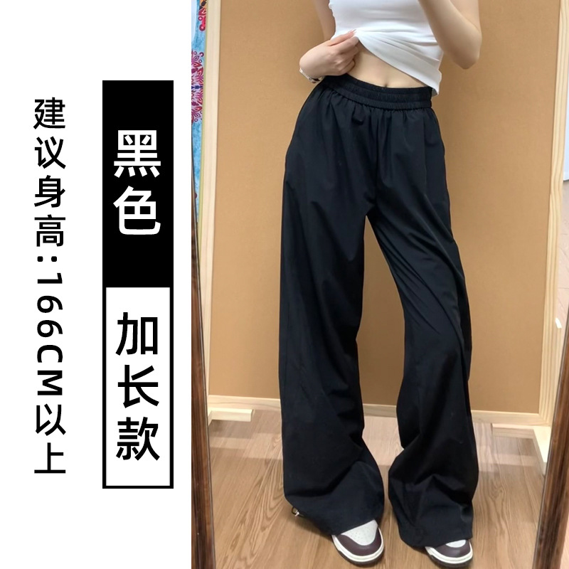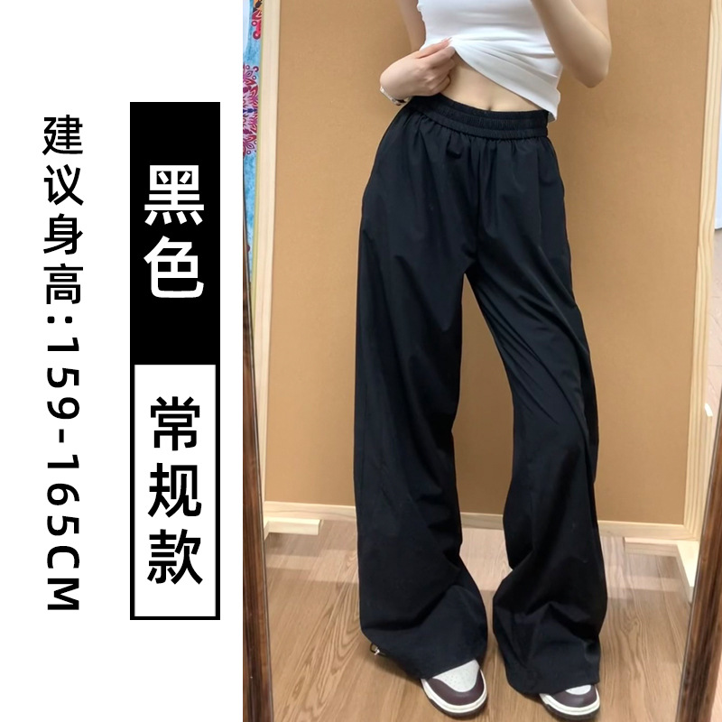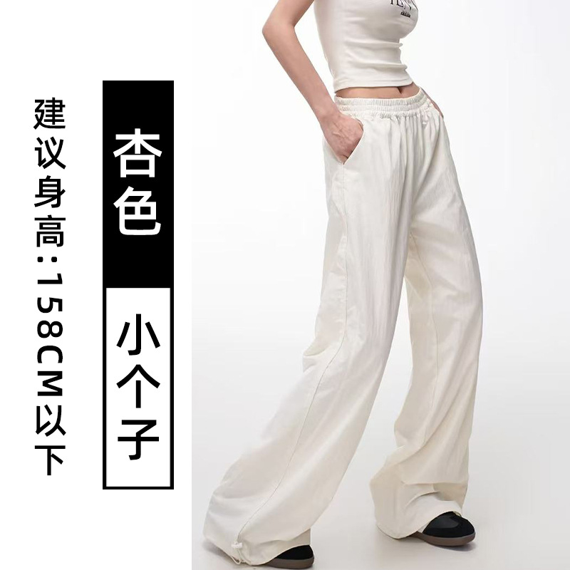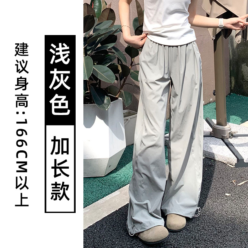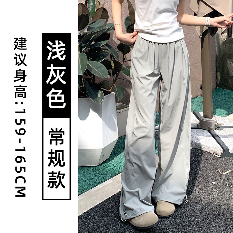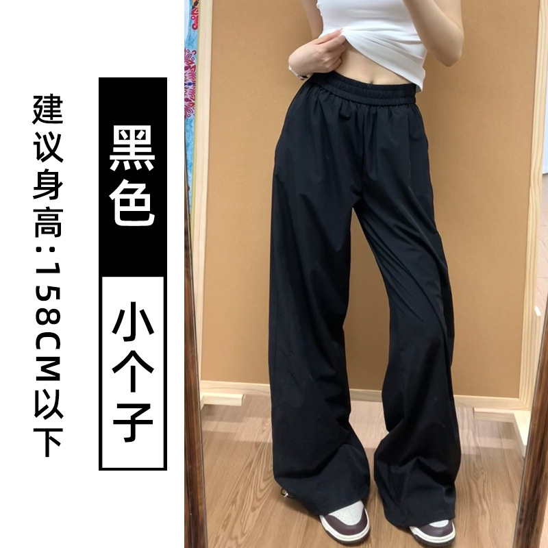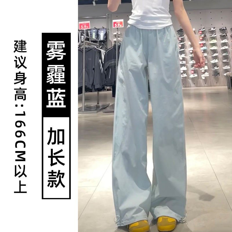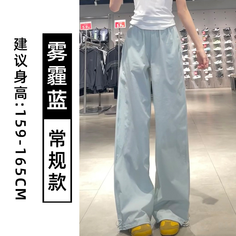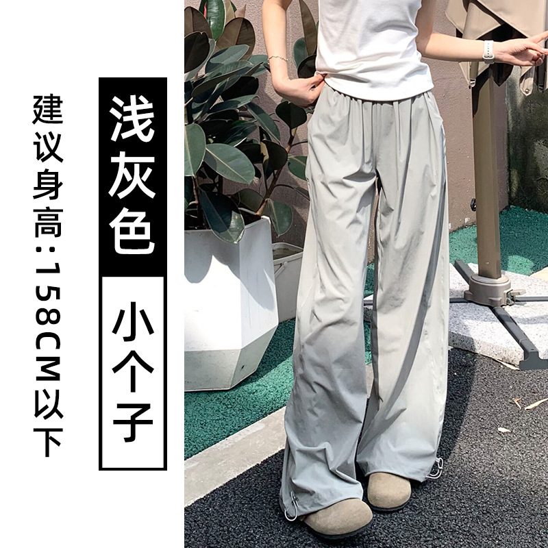 藏青色速干工装裤女夏季薄款美式宽松直筒阔腿裤小个子休闲运动裤