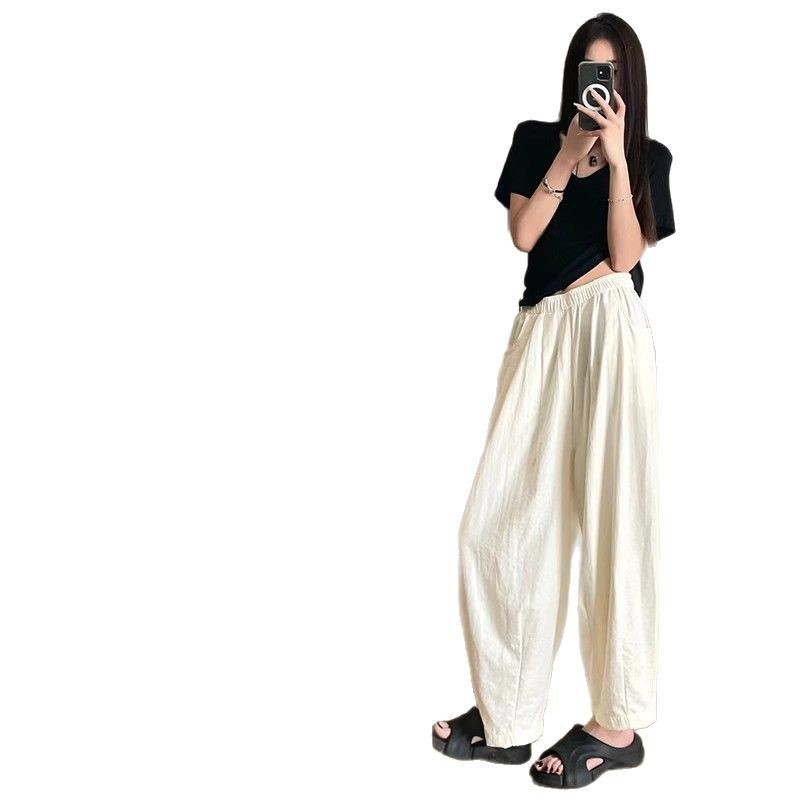 日系奶奶裤女春秋薄款2025新款高腰阔腿小个子九分哈伦奶芙萝卜裤