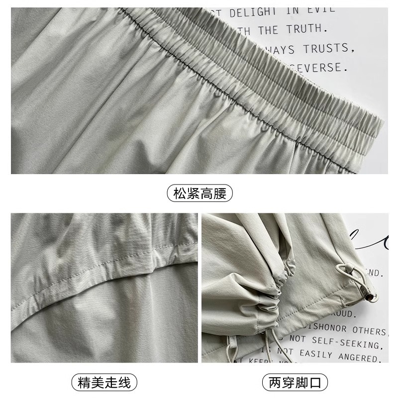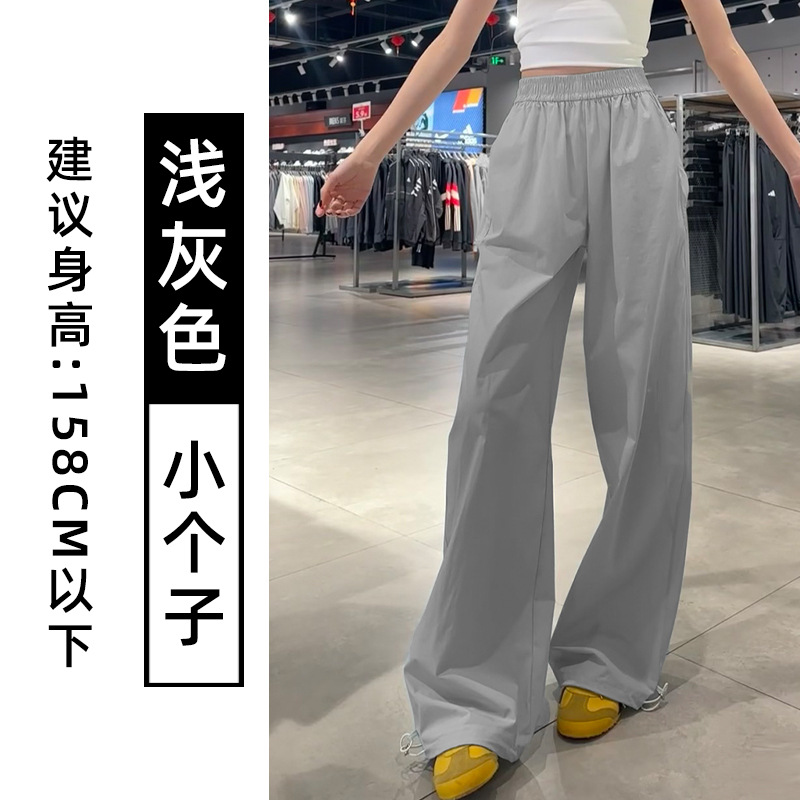 灰色工装裤女夏季2025新款高腰垂感拖地阔腿裤美式速干运动裤薄款