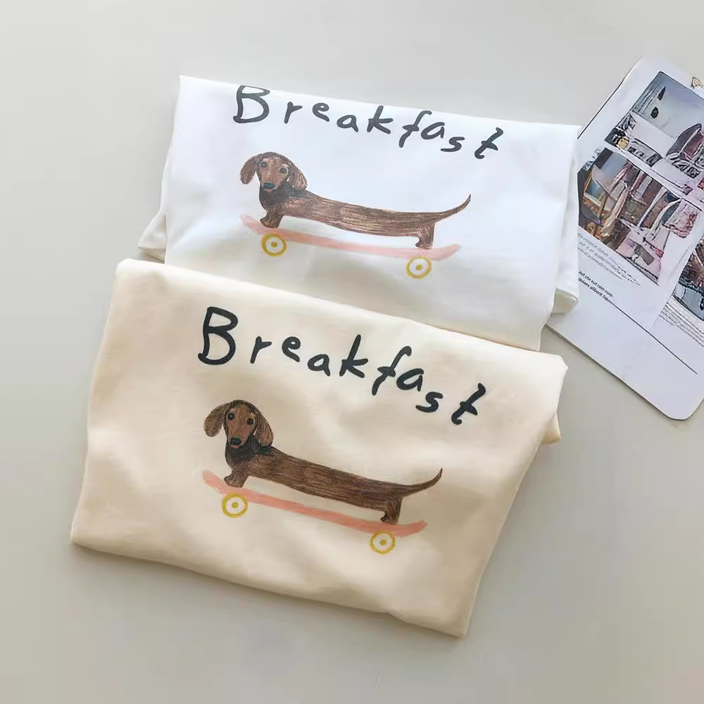 设计感小众美式复古卡通印花短袖T恤女休闲宽松百搭纯棉上衣服夏
