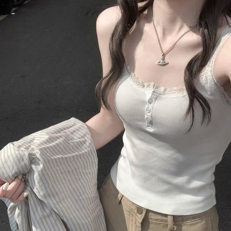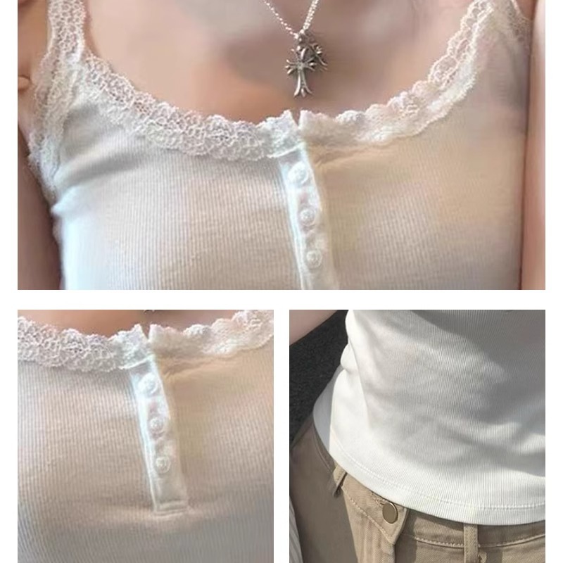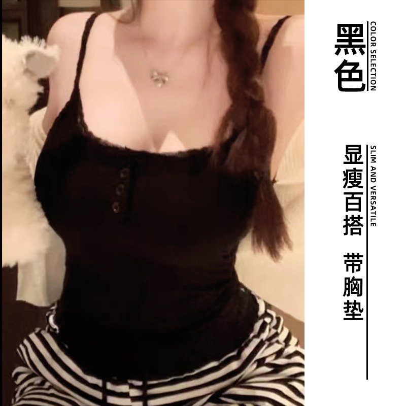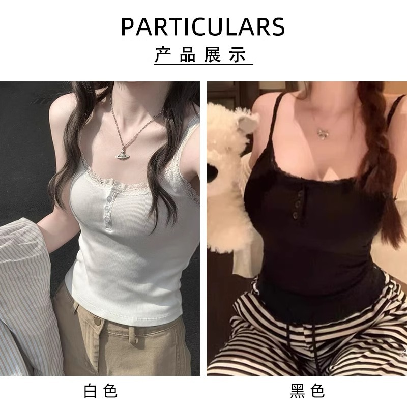 白色纯欲风蕾丝吊带小背心女夏季甜辣修身内搭带胸垫打底外穿上衣