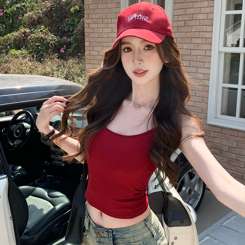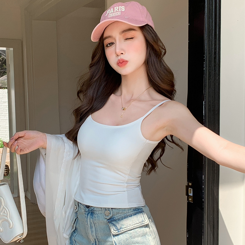 杏色吊带背心女夏季薄款带胸垫内搭修身显瘦性感辣妹外穿无袖上衣