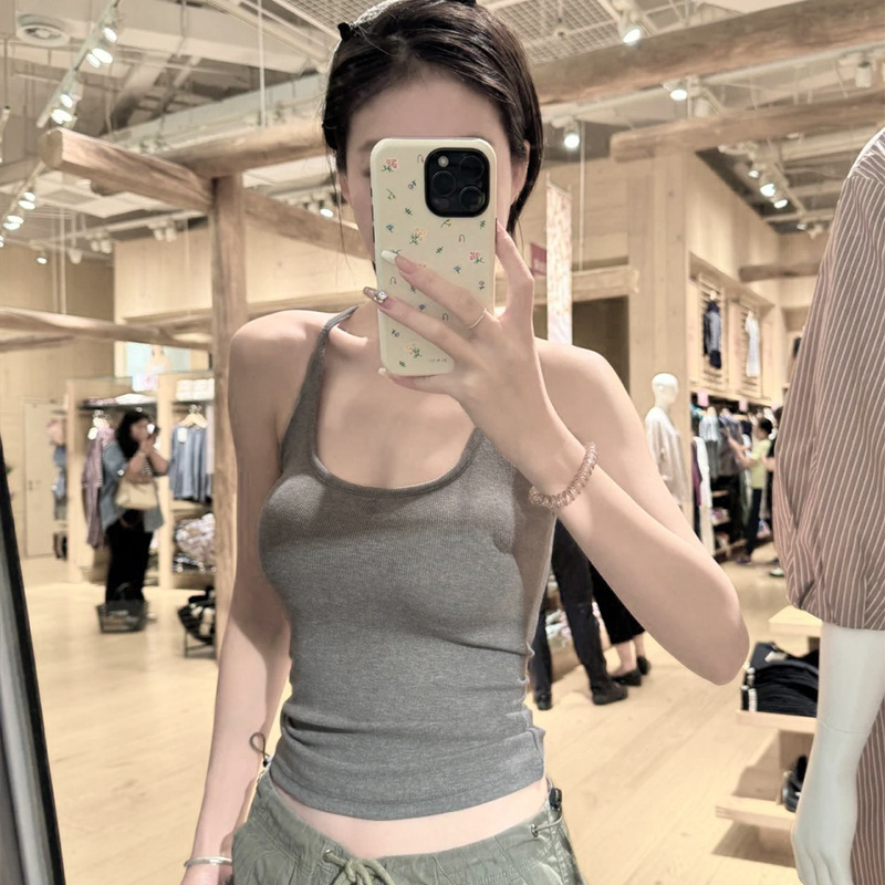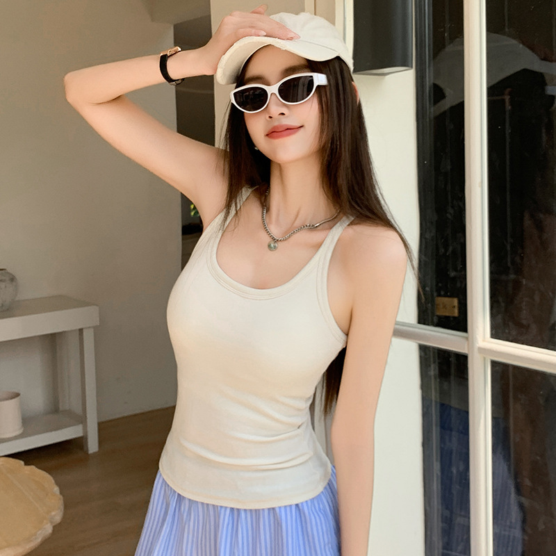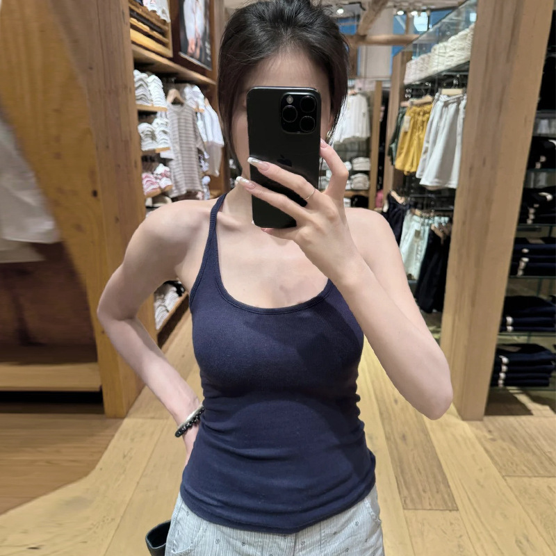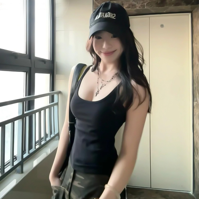 美式黑色吊带背心女修身显瘦运动打底衫性感辣妹带胸垫无袖上衣夏