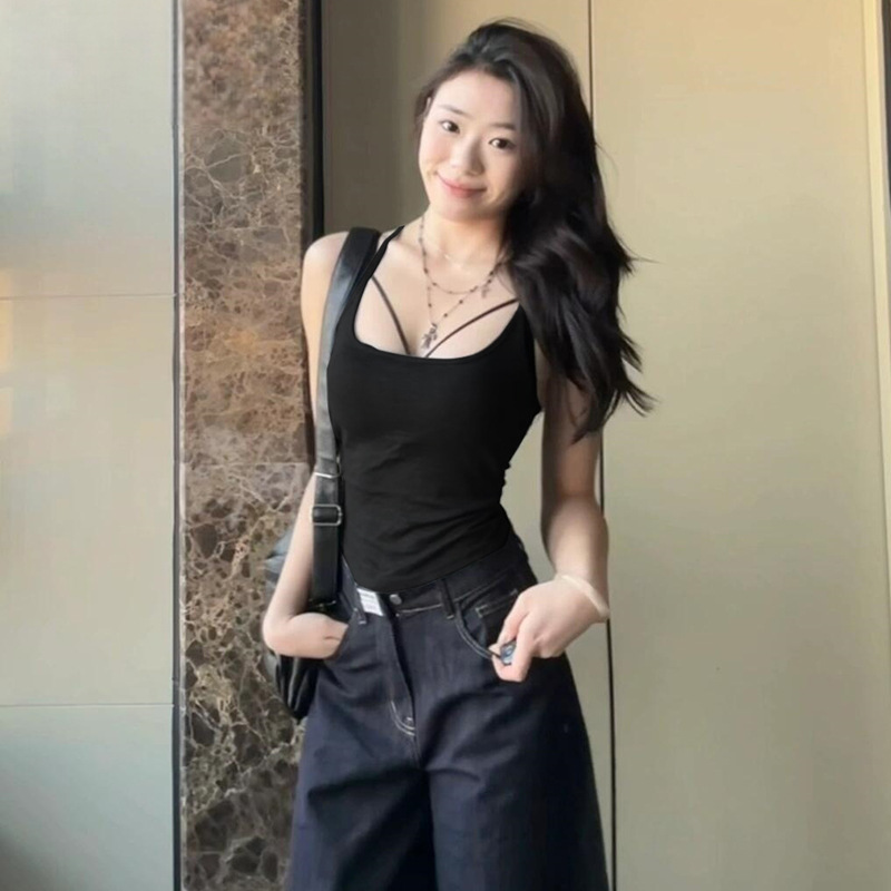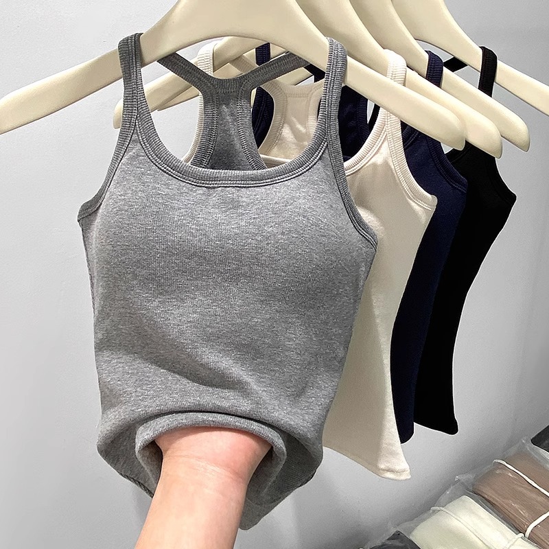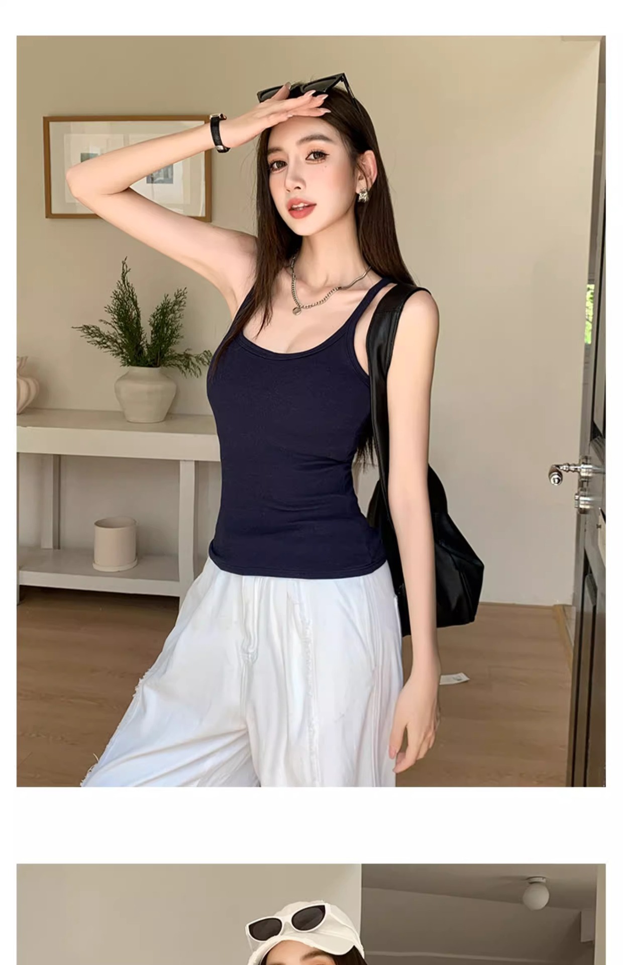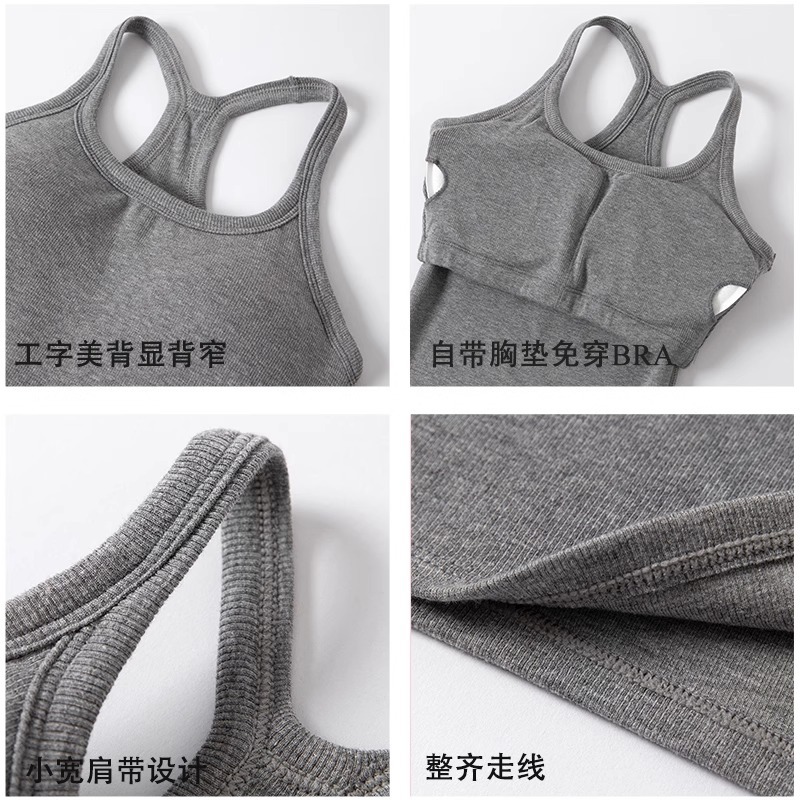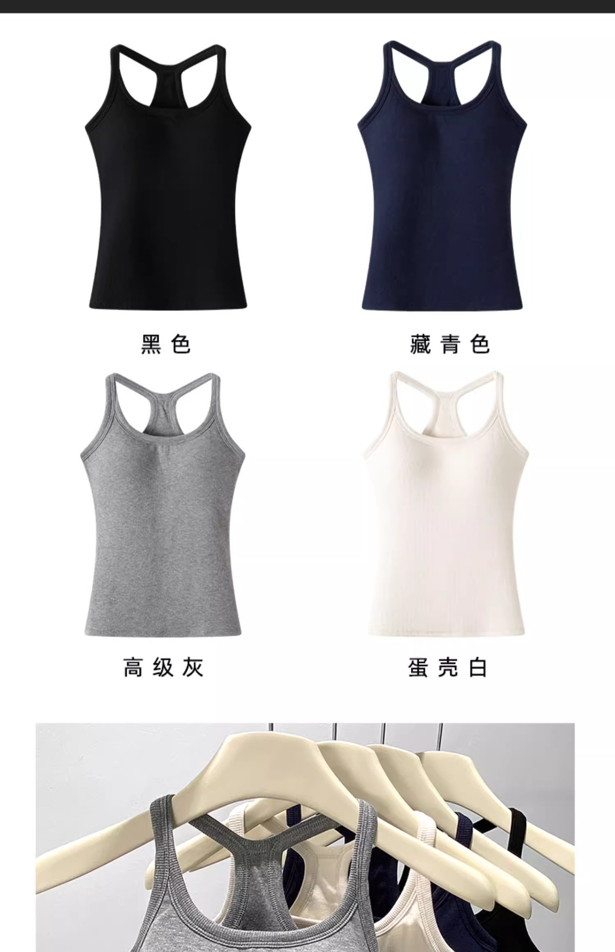 美式吊带背心女夏季薄内搭2025新款带胸垫遮副乳运动挂脖无袖上衣