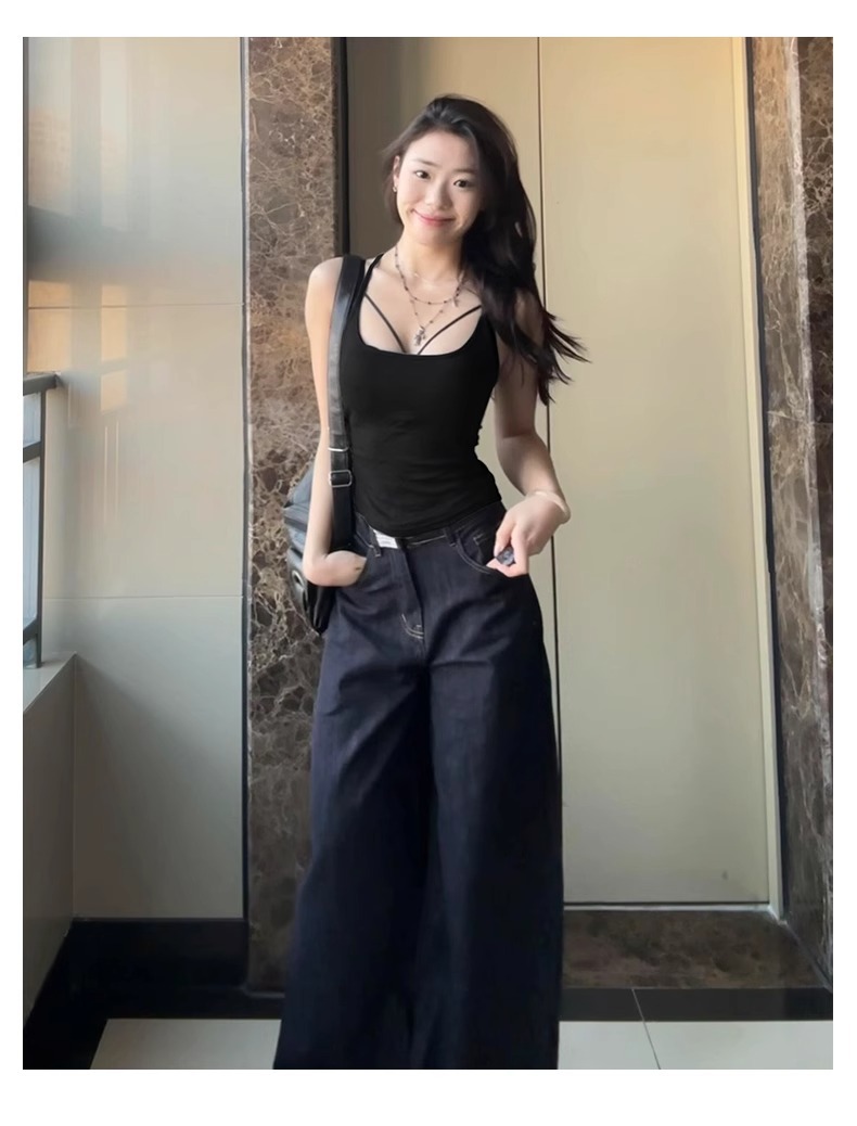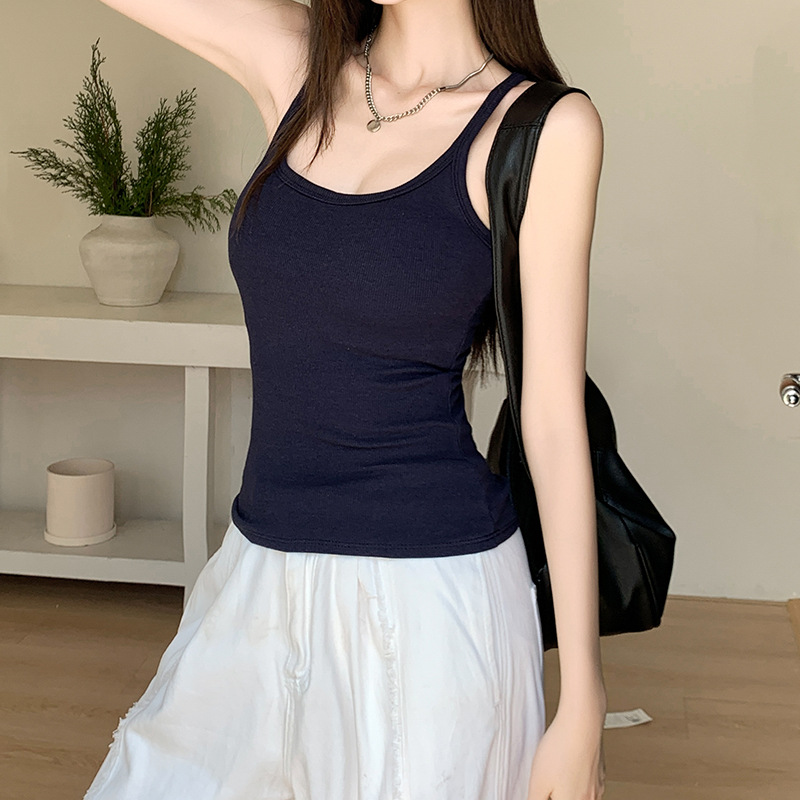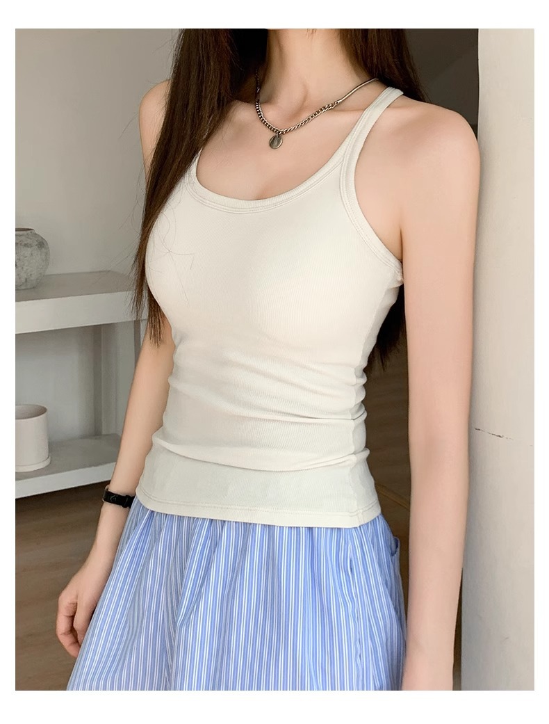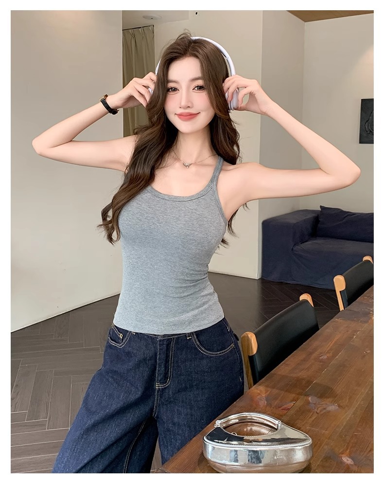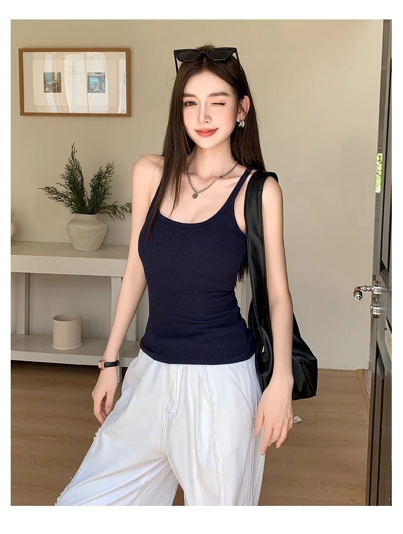 美式吊带背心女夏季薄内搭2025新款带胸垫遮副乳运动挂脖无袖上衣