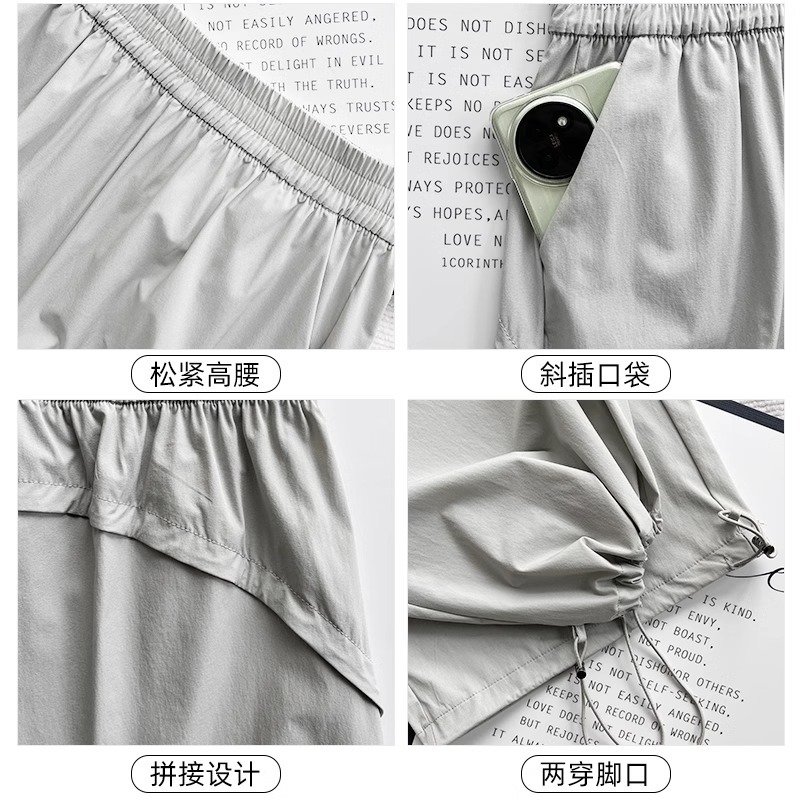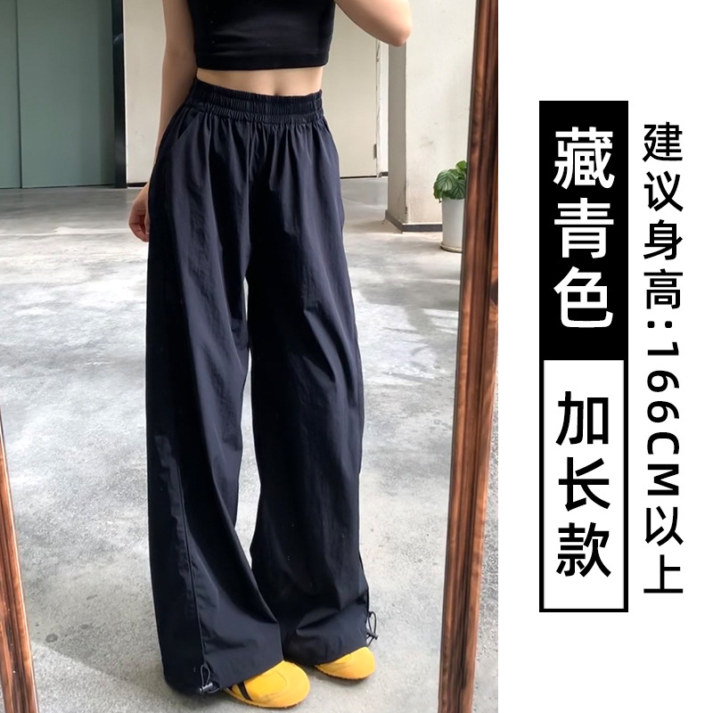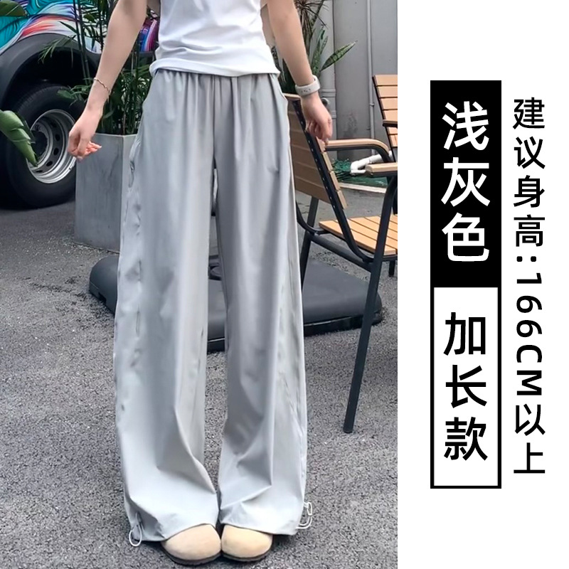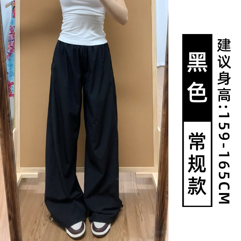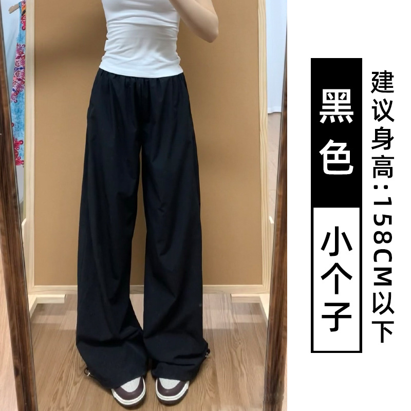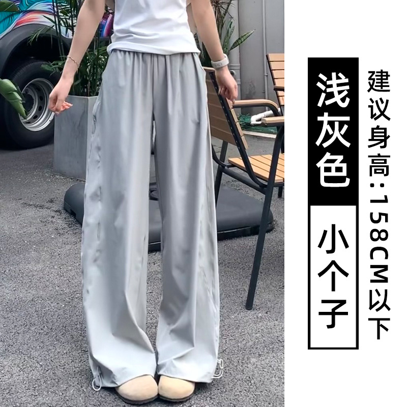 美式速干工装裤女夏季薄款2025新款小个子松紧高腰垂感拖地阔腿裤