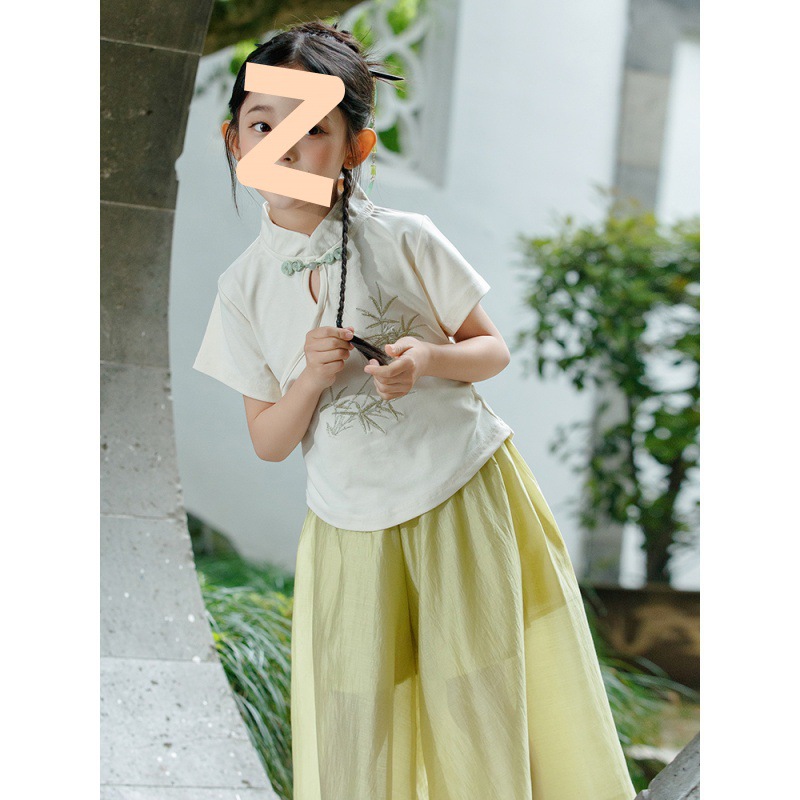 66公主女童中式阔腿裤短袖套装儿童夏装新款洋气女孩衣服夏季