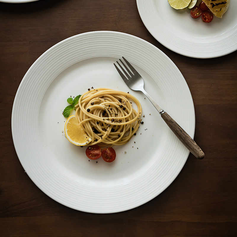 复古陶瓷平盘菜盘高颜值浮雕西餐意面盘早餐甜品盘螺纹水果沙拉盘