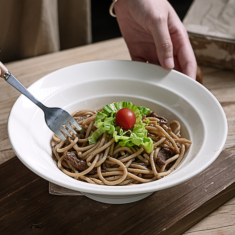 简约复古风纯色陶瓷斗笠碗创意浮雕家用餐具碗沙拉碗甜品碗点心碗