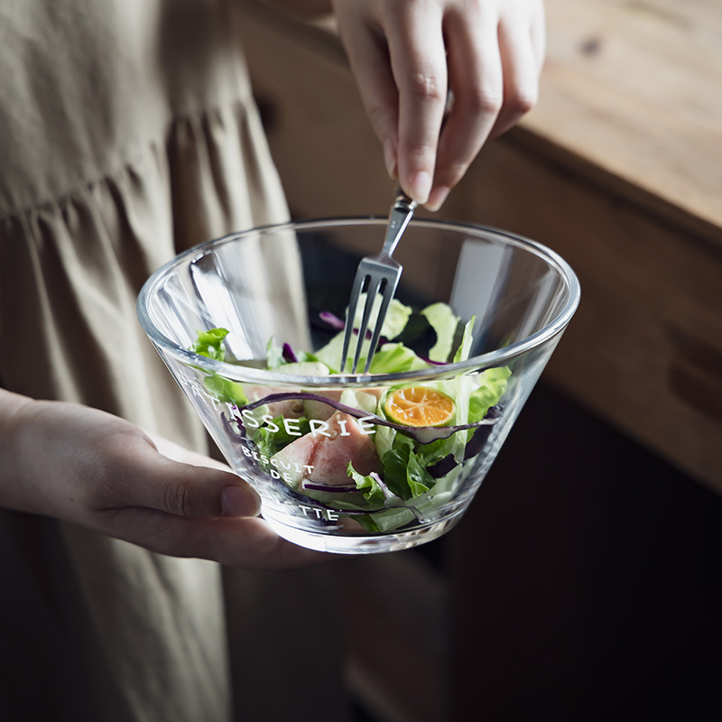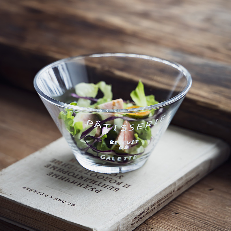高级感英文玻璃碗家用复古风蔬菜水果沙拉碗餐具小碗泡面碗甜品碗