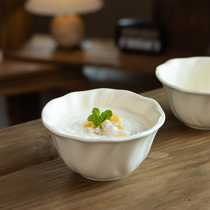 奶油风好看的陶瓷碗甜品碗早餐酸奶燕麦碗家用餐具纯色小碗米饭碗