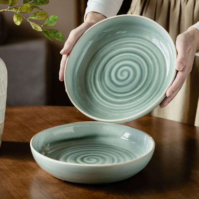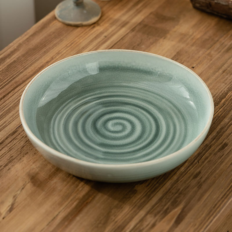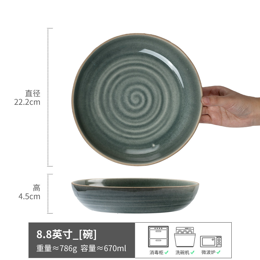 创意环纹沙拉碗复古风陶瓷大碗家用餐具圆形碗批发高颜值餐厅菜碗