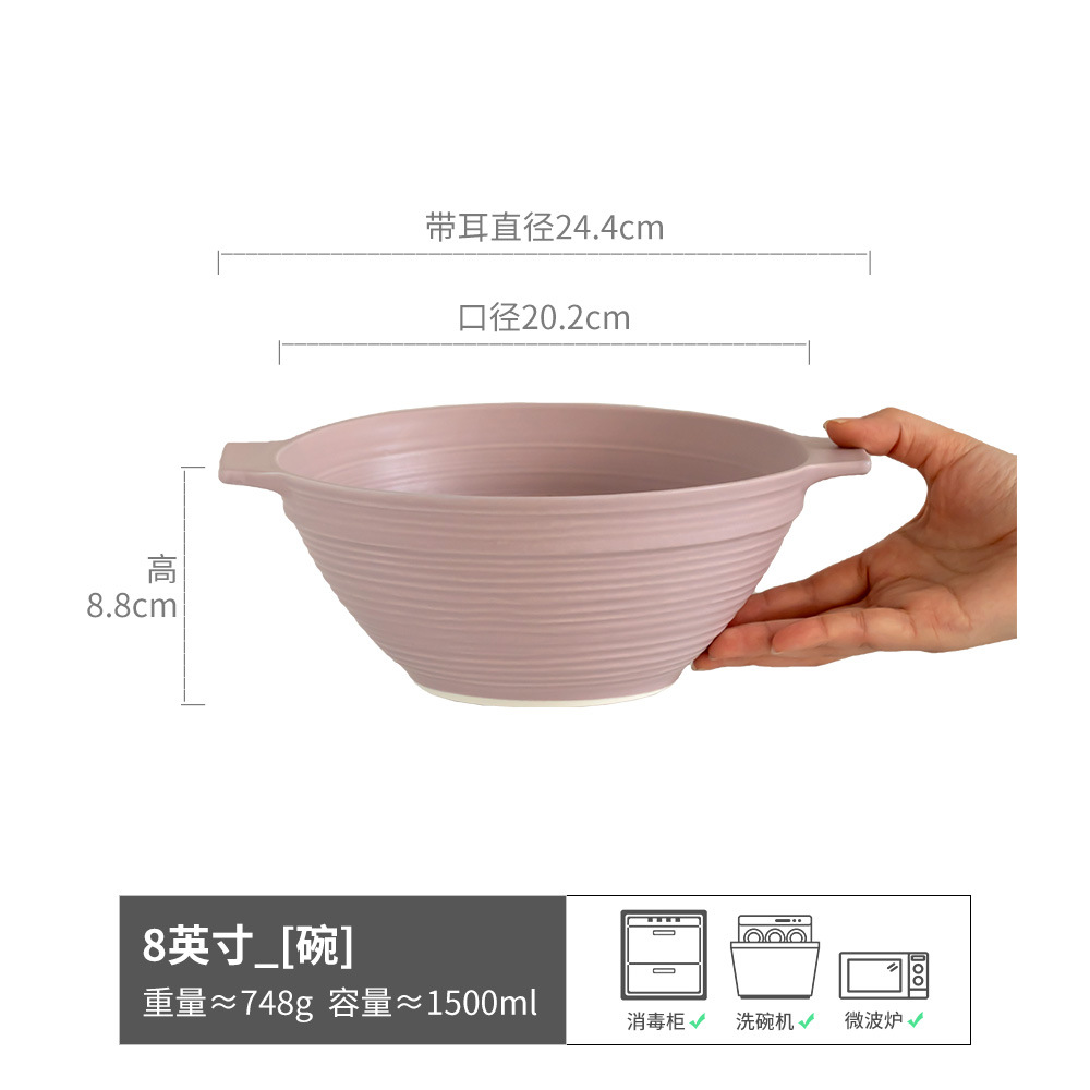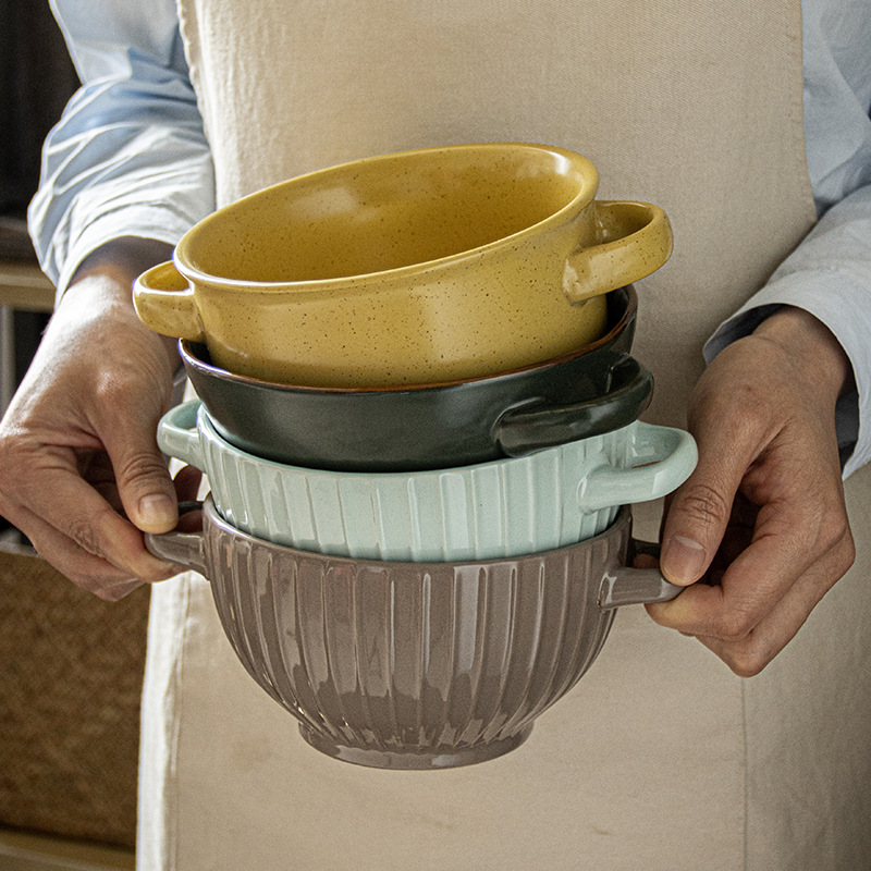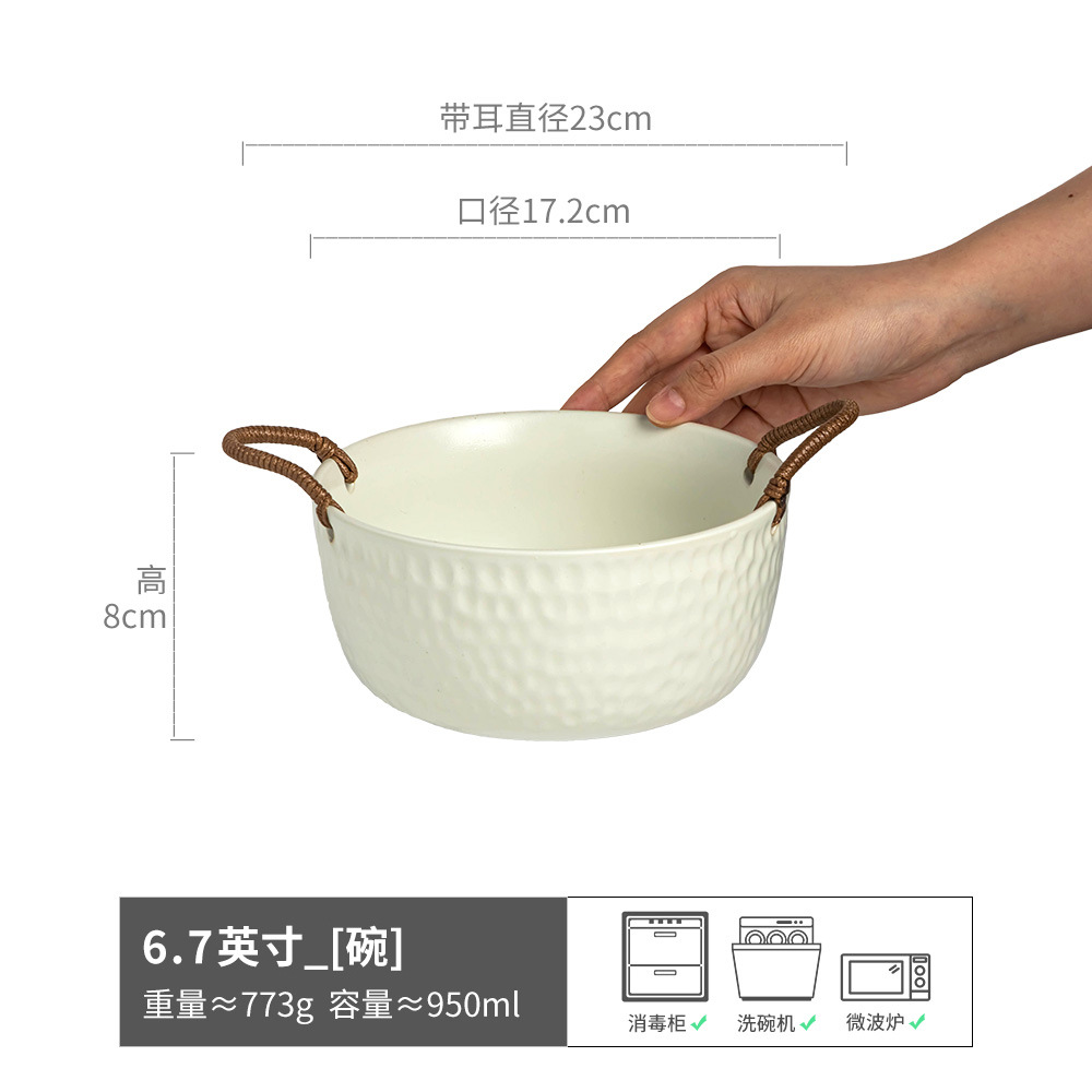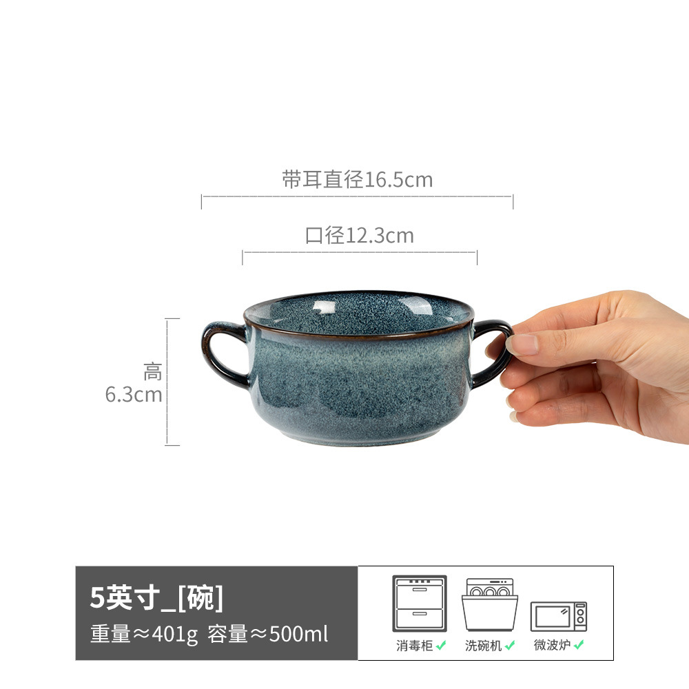 复古双耳陶瓷碗面碗酸奶碗双耳碗圆形菜碗汤碗日式碗家用餐具