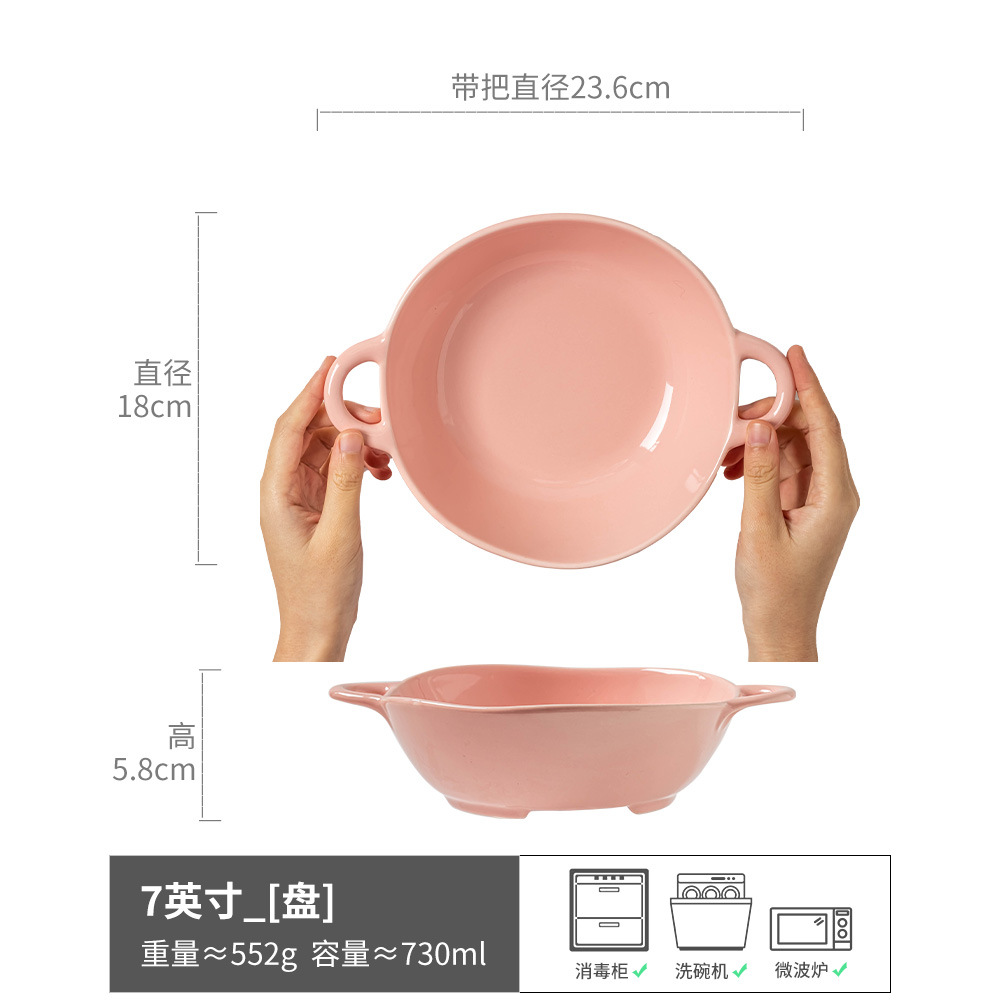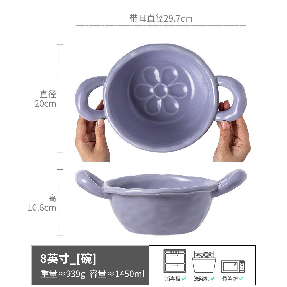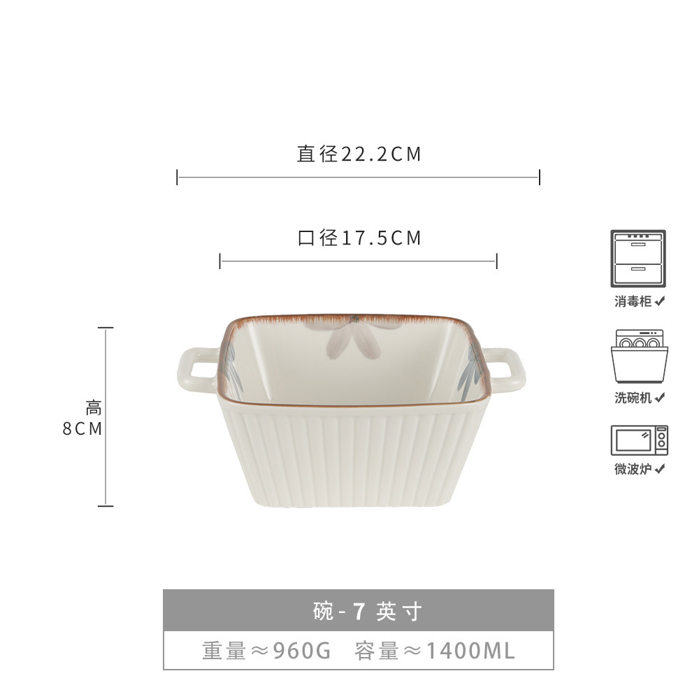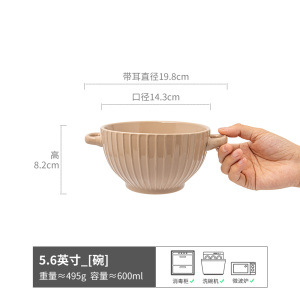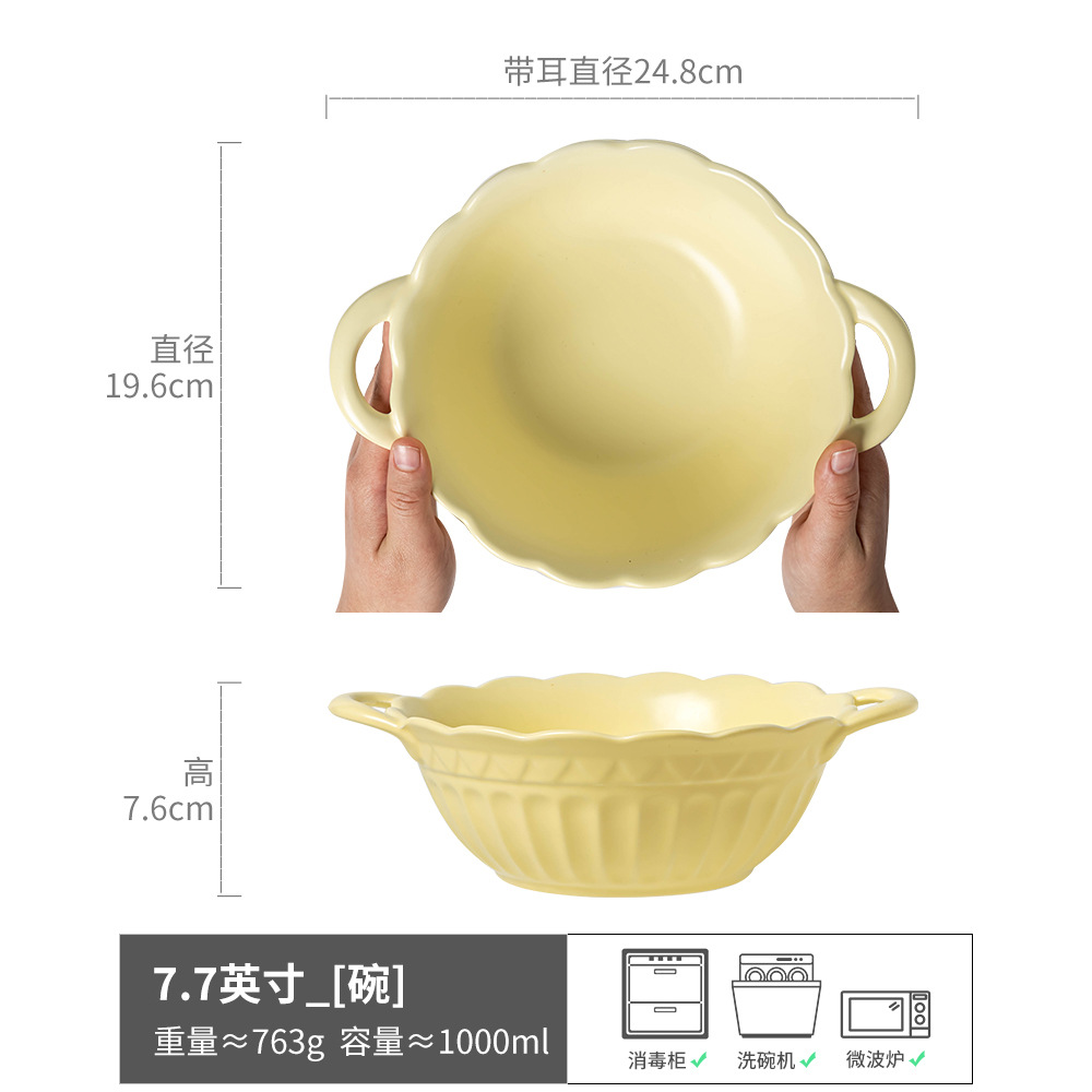 复古双耳陶瓷碗面碗酸奶碗双耳碗圆形菜碗汤碗日式碗家用餐具