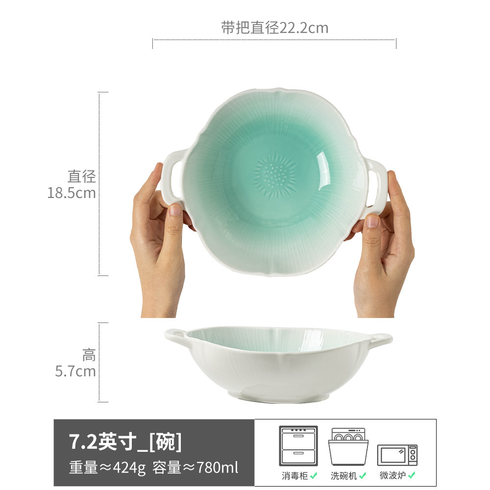 - 青盐-双耳碗渐变白绿7.2英寸(微瑕)