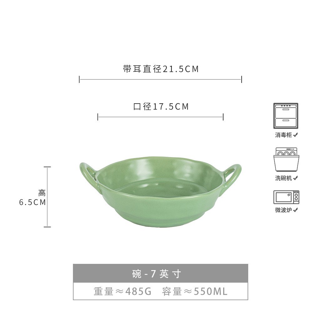 - 千羽-浅苔绿双耳碗7英寸(微瑕)