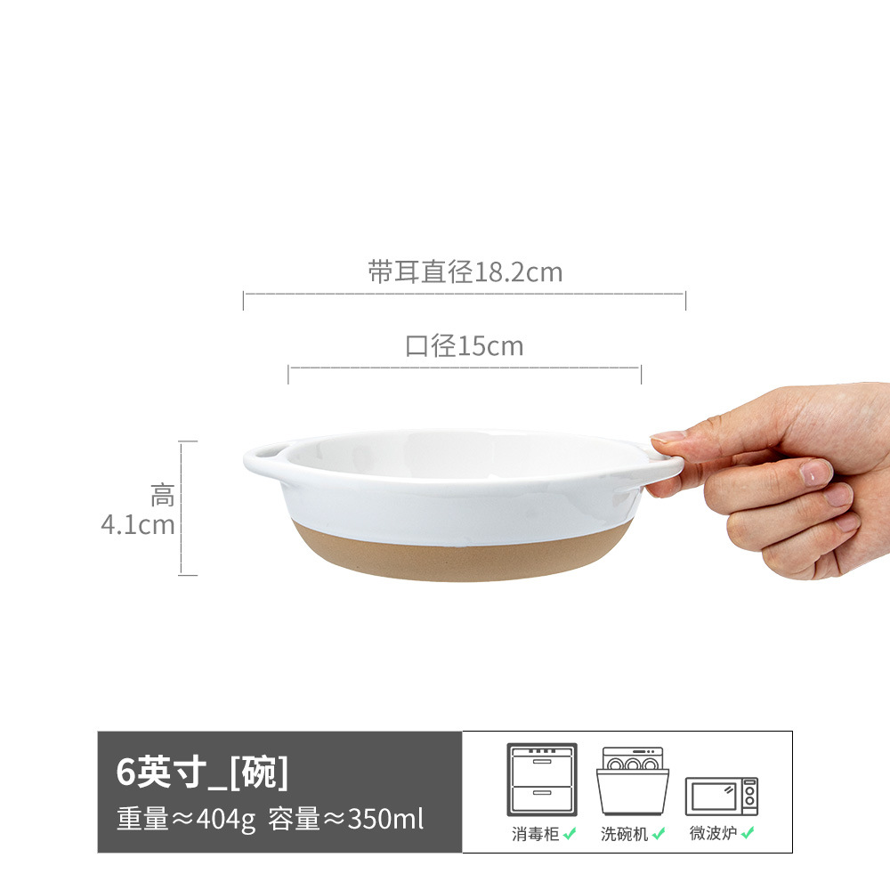 - 米狄-粗陶底双耳碗6英寸(微瑕)