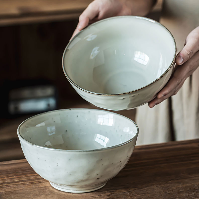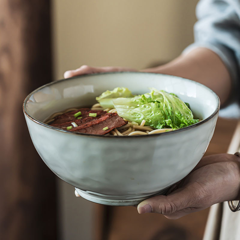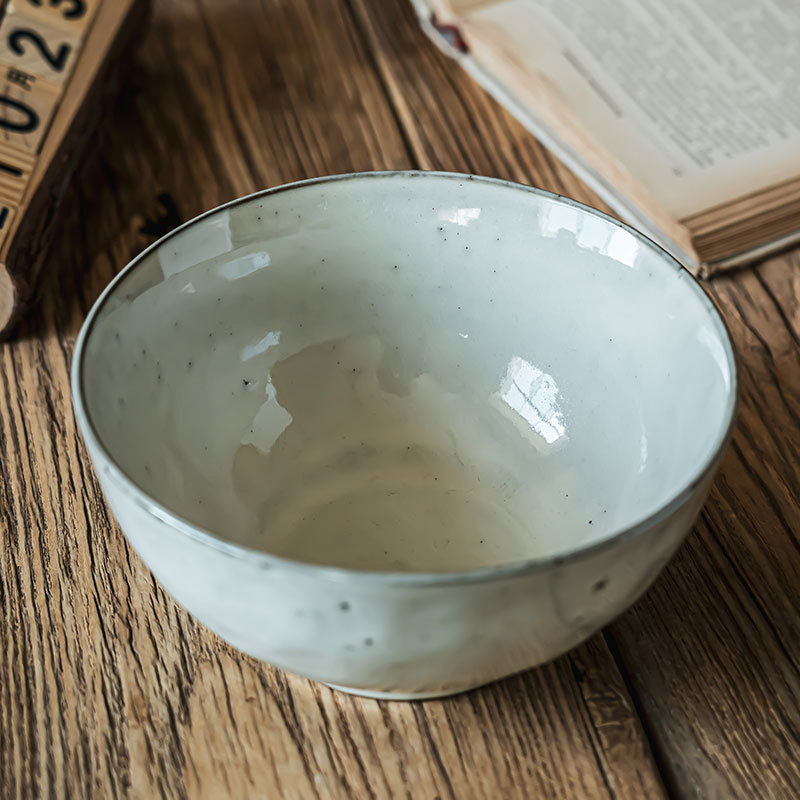 简约圆形陶瓷碗创意棕色描边水果沙拉碗复古麻点家居日用面碗汤碗