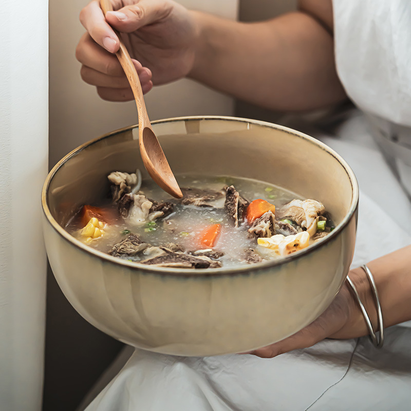古朴实用大汤碗窑变釉大号菜碗汤面碗陶瓷大碗餐具家用大英寸果盆