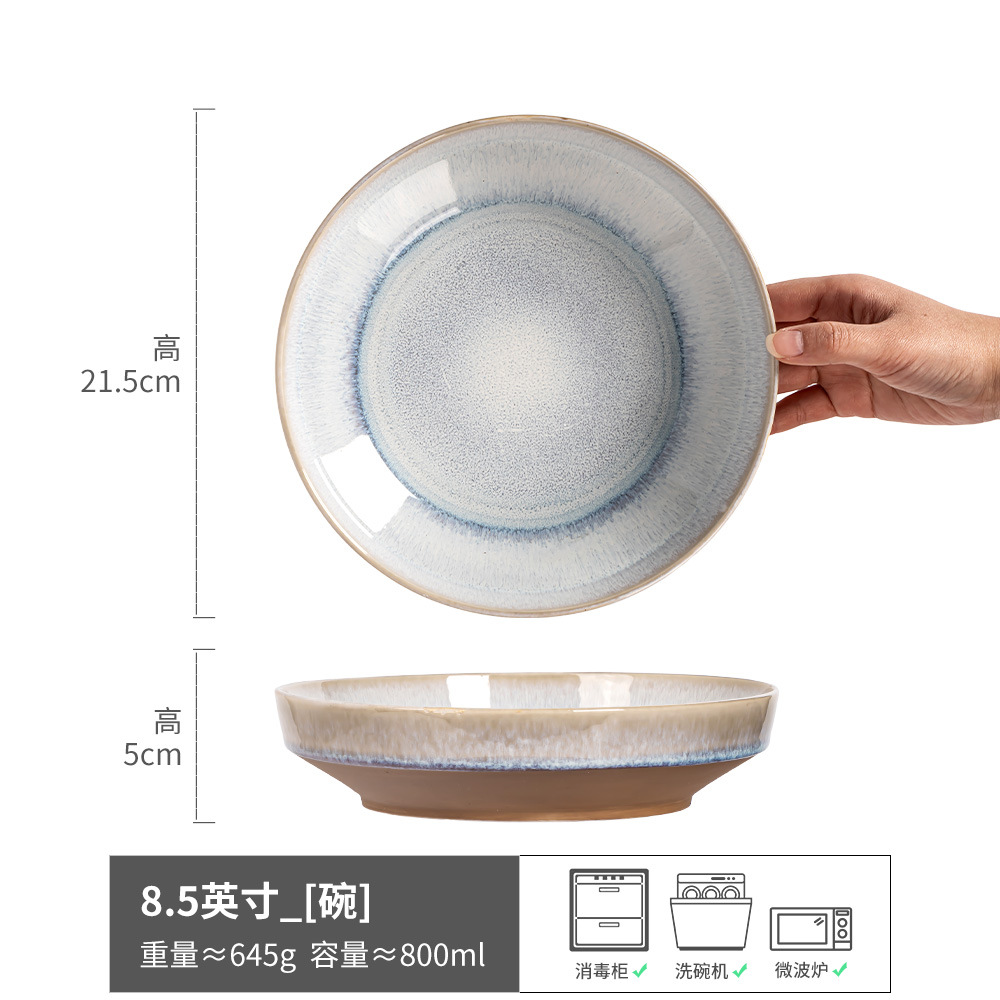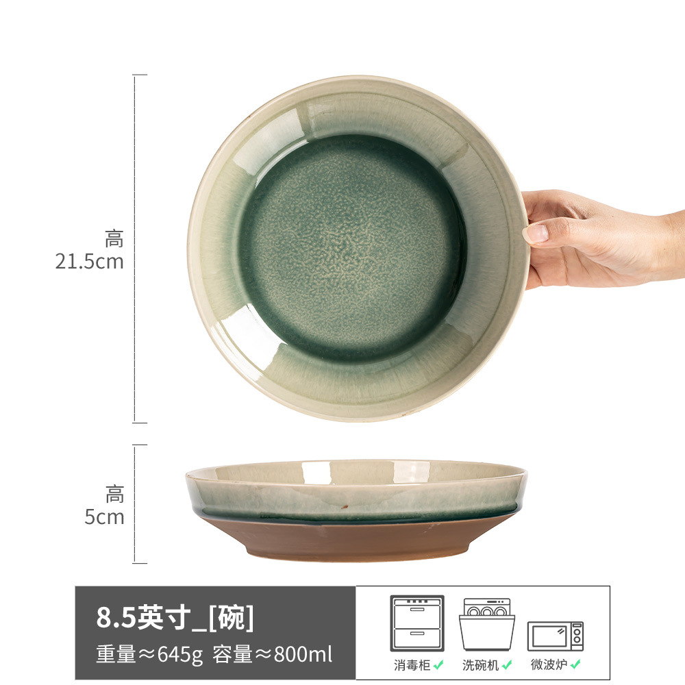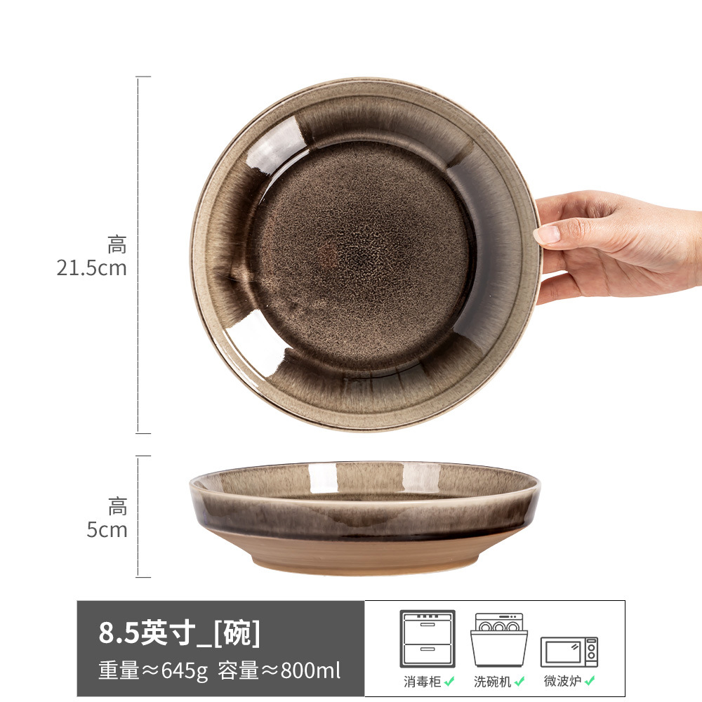 窑变陶瓷碗批发复古风餐具浅碗沙拉碗家用菜碗大碗日式面碗厚底碗