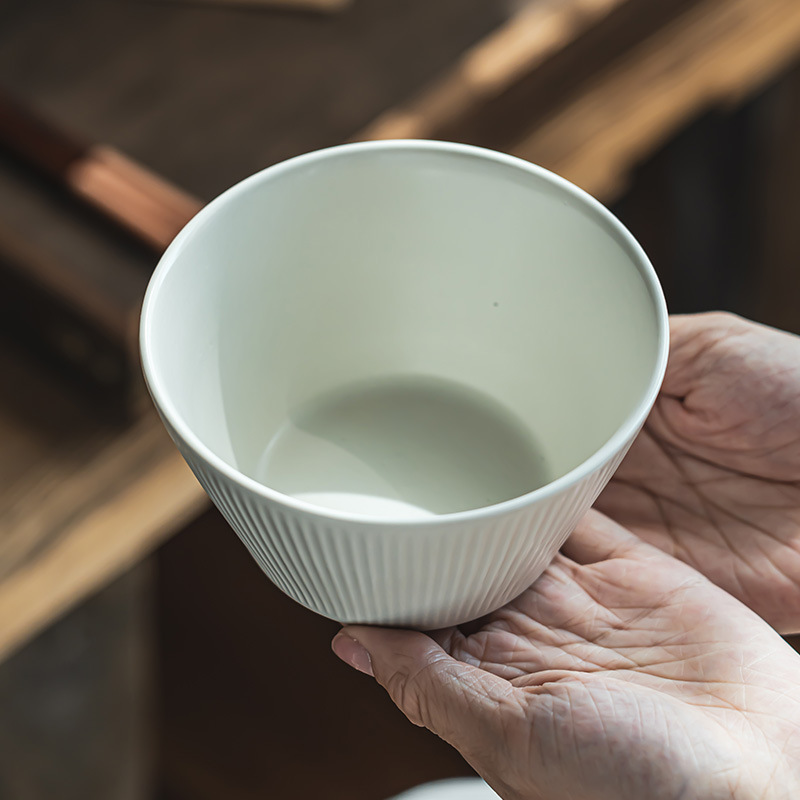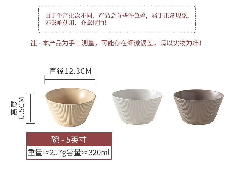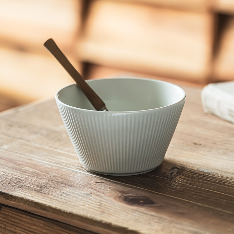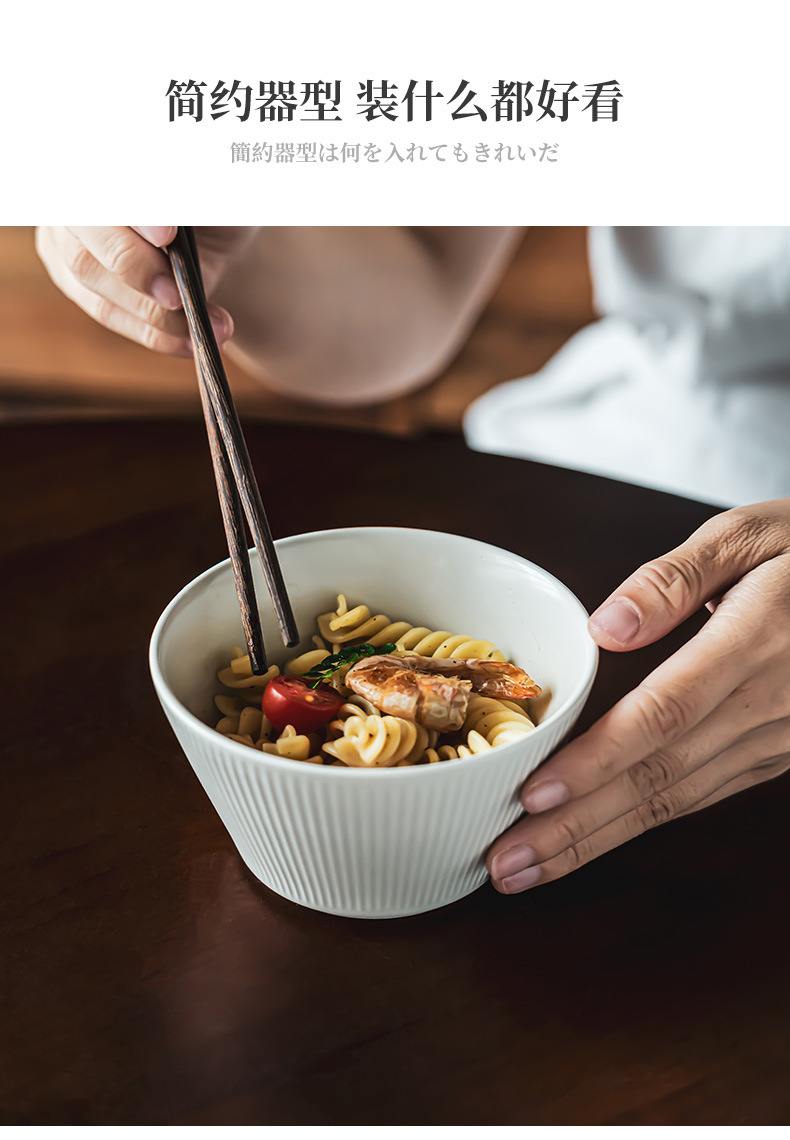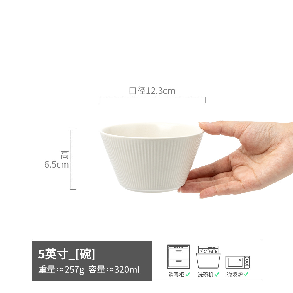北欧复古风竖纹浮雕米饭碗家用高级感粥碗甜汤碗陶瓷小碗餐具面碗