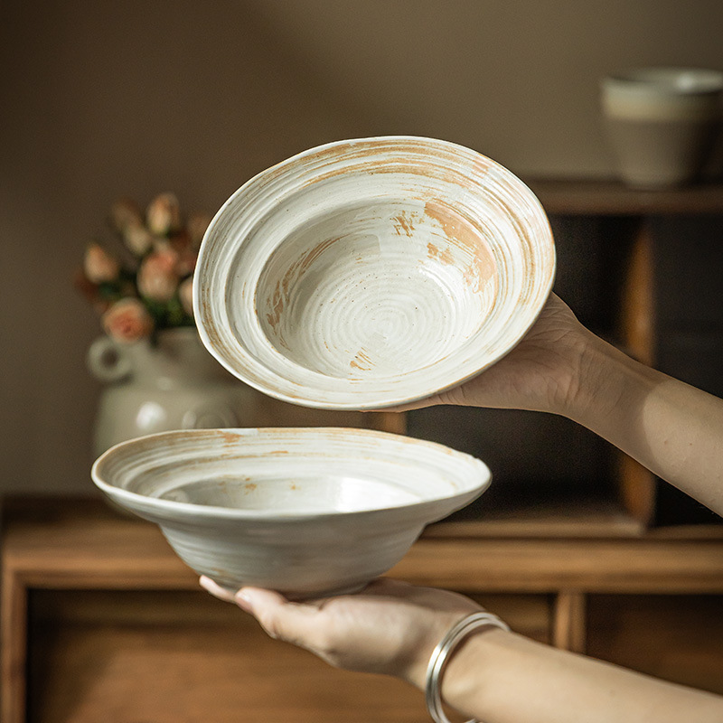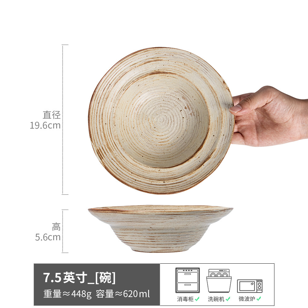 格雷草帽碗复古做旧手工粗陶面碗大碗沙拉碗意面碗菜碗大汤碗餐具