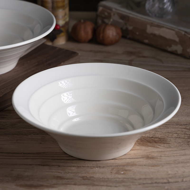 简约复古风纯色陶瓷斗笠碗创意浮雕家用碗沙拉碗甜品碗点心碗餐具