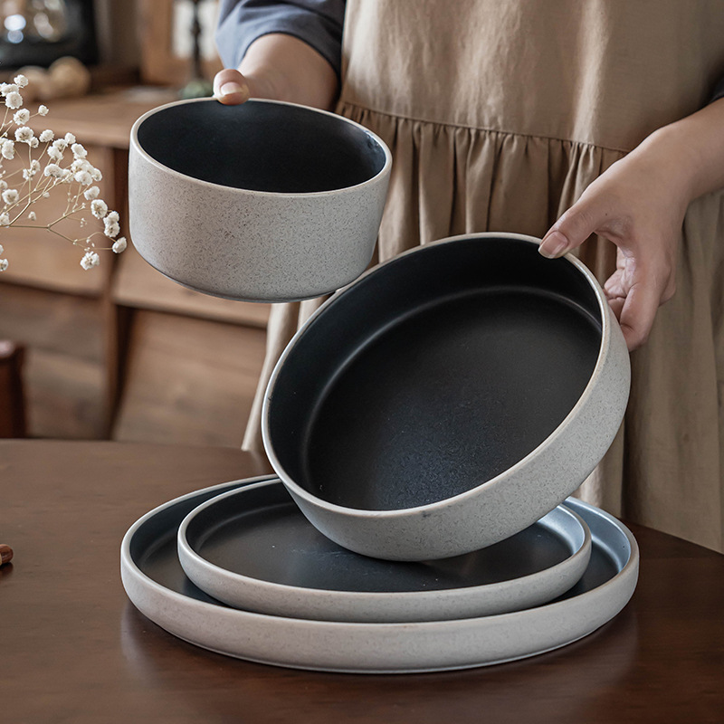 盘子高级感圆形盘复古陶瓷大盘餐具碗盘套件批发碗家用菜碗沙拉碗