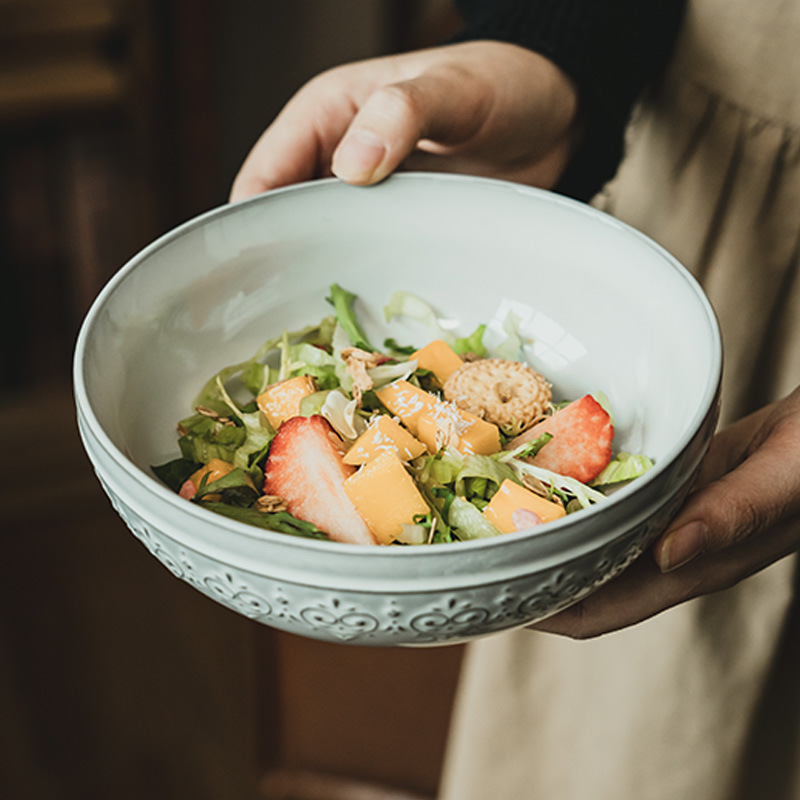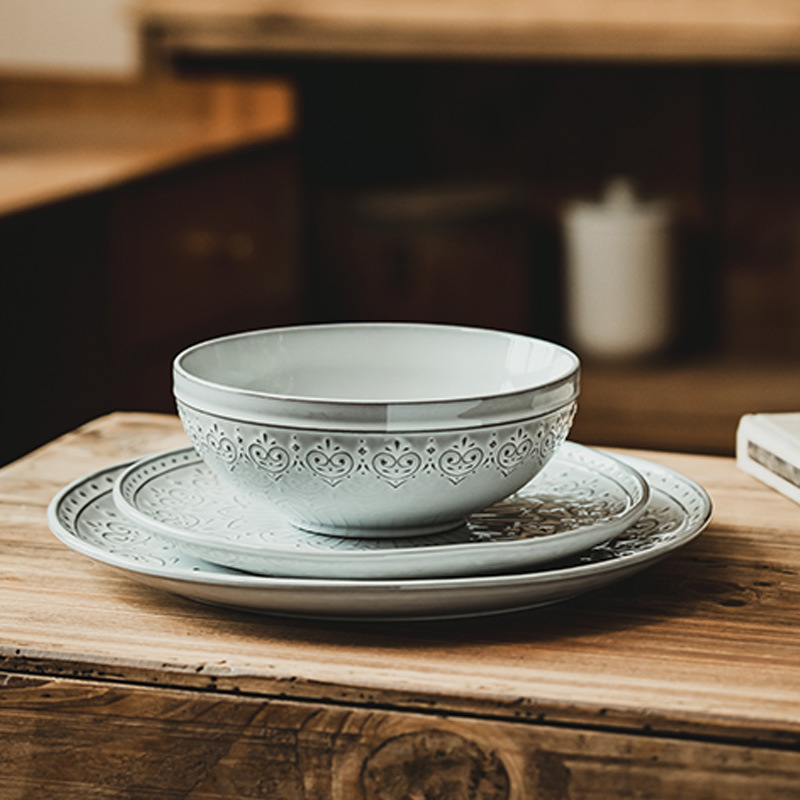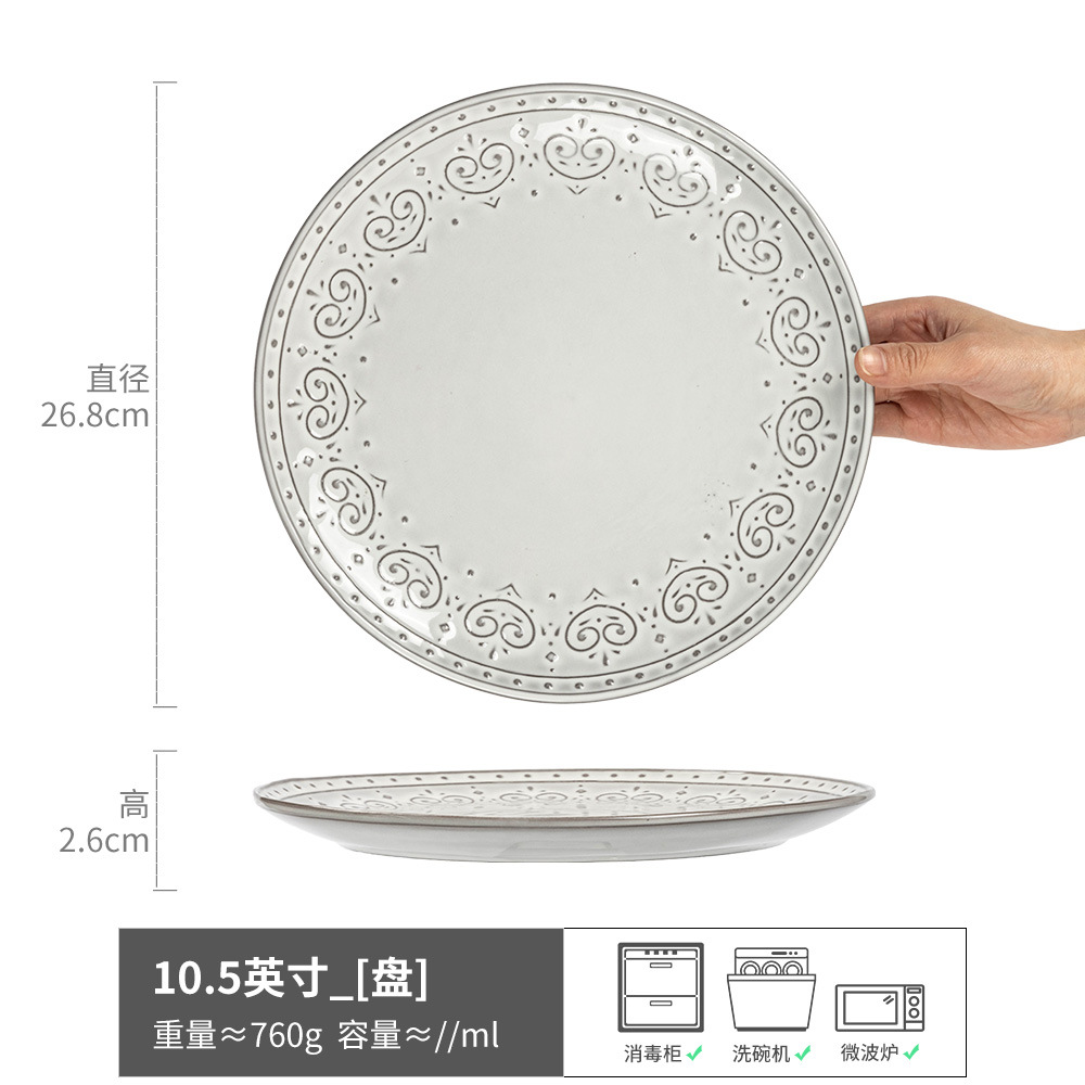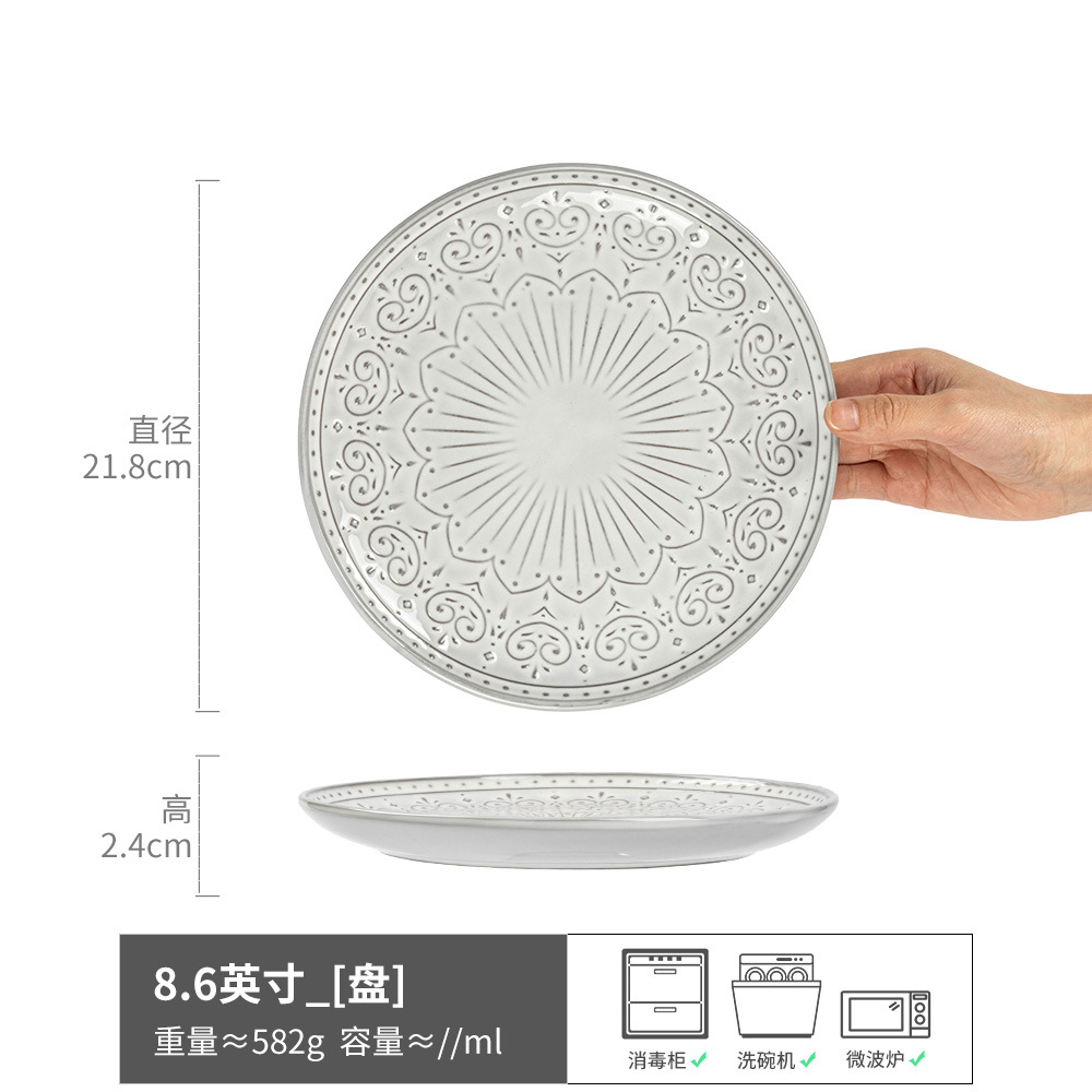日式浮雕花纹盘子大盘餐具碗盘套件家用盘菜盘沙拉碗餐厅盘子