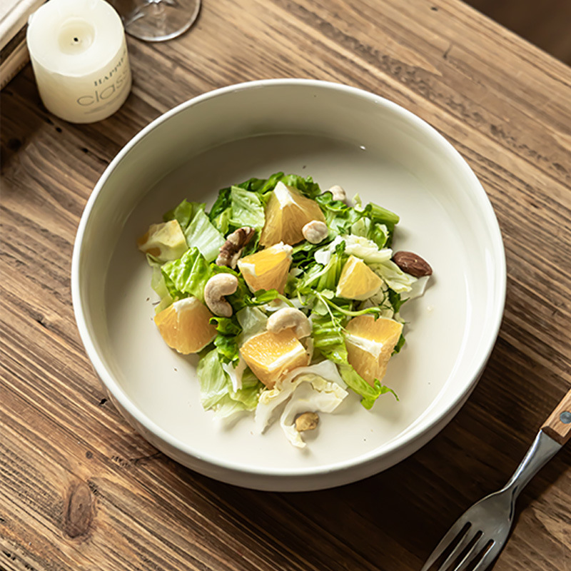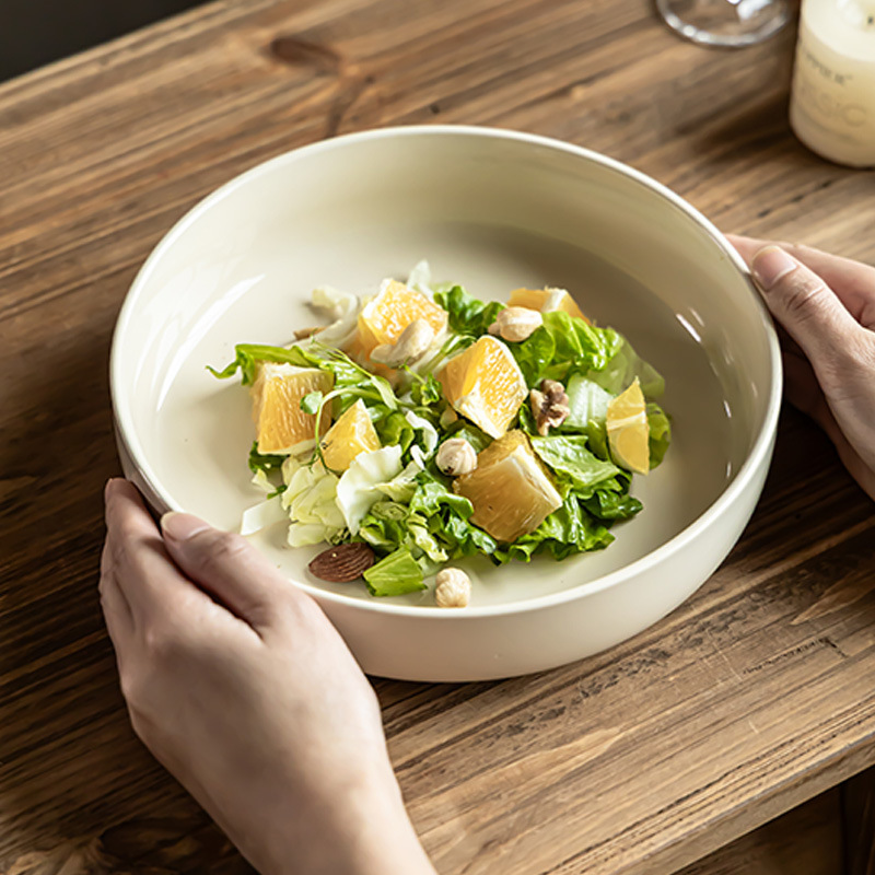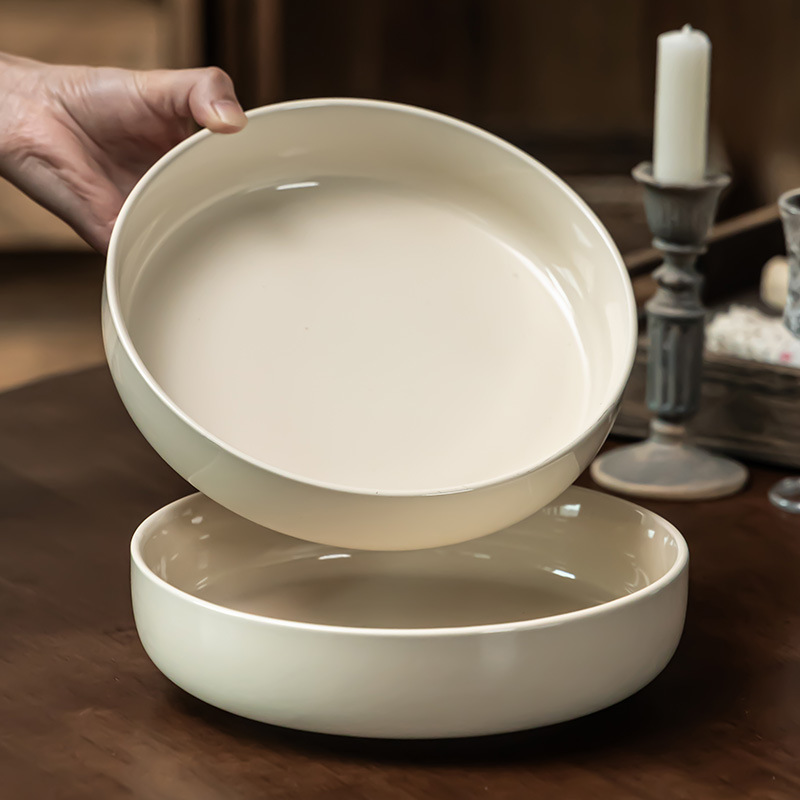 复古风纯色浅碗陶瓷碗大碗批发家用菜碗菜盘餐具批发碗简约沙拉碗
