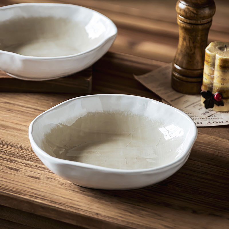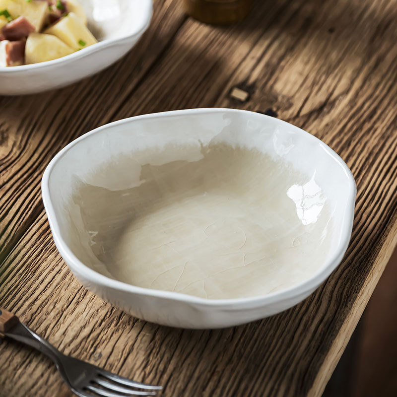 日式风高级感餐具不规则冰裂釉菜碗家用水果沙拉碗特色复古汤面碗