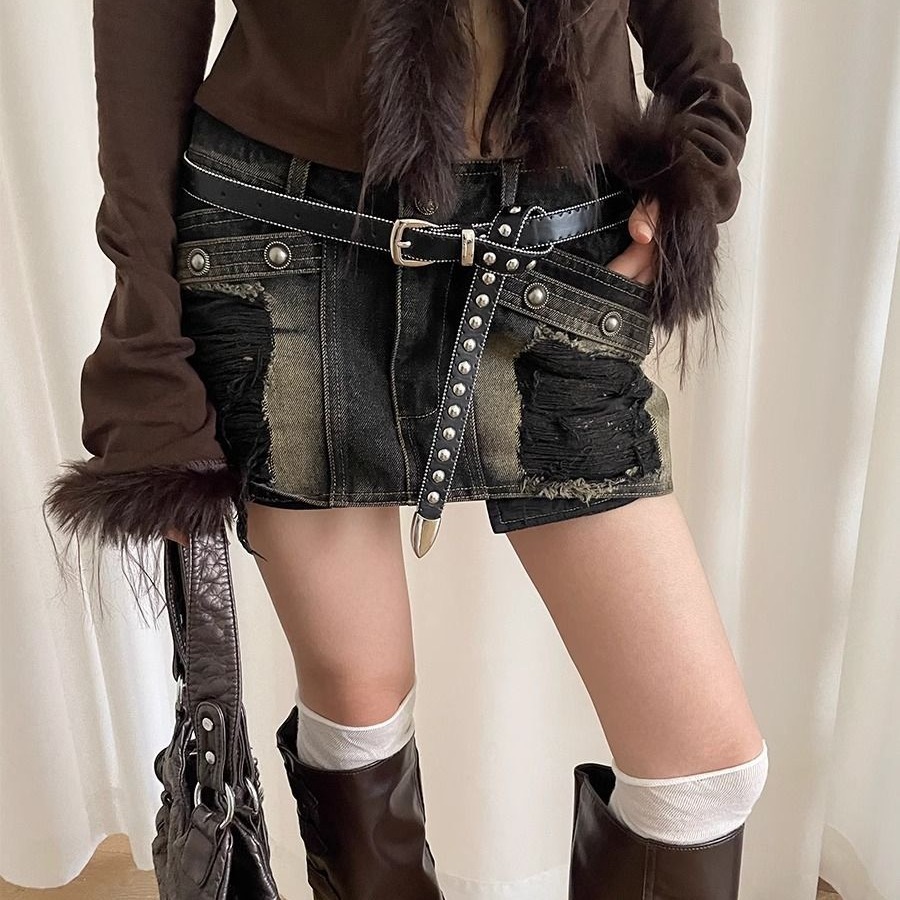 重工复古朋克风腰带女美式y2k铆钉设计感皮带细款裙子牛仔裤配饰