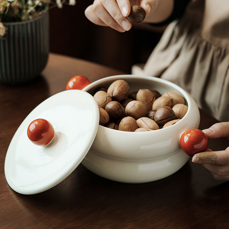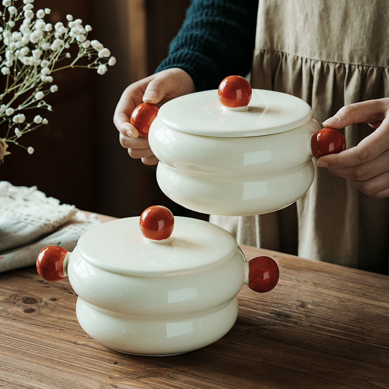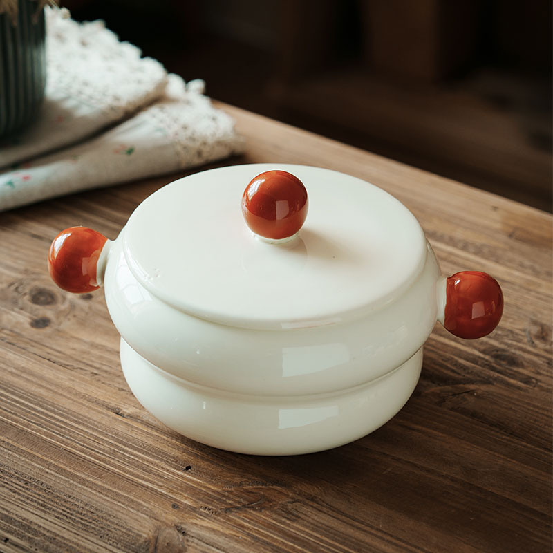 棉花糖-带盖双耳碗奶白970ML(微瑕)
