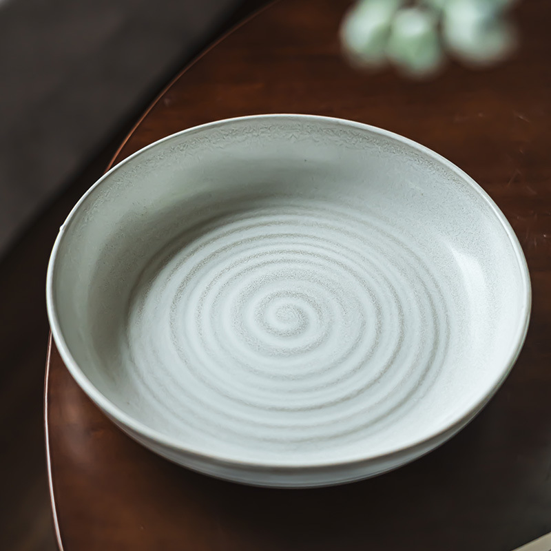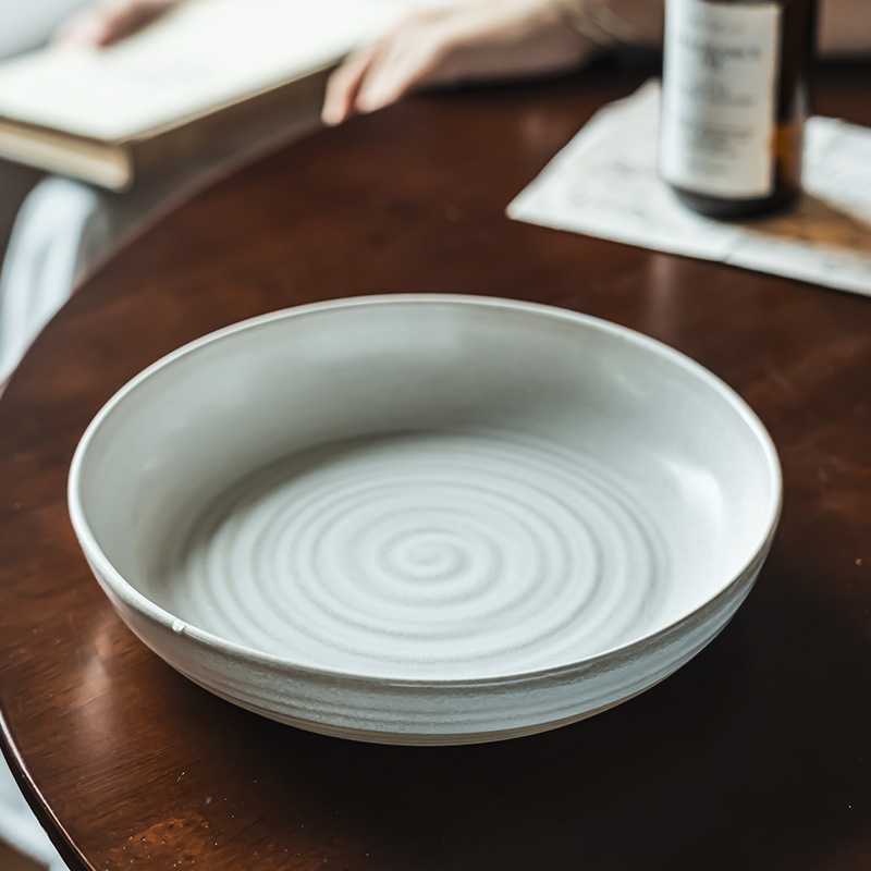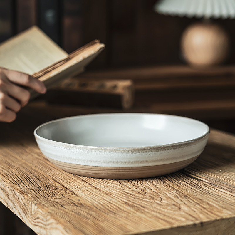 如旧系列简约实用做旧粗陶深盘家用陶瓷菜盘日式复古圆形餐具汤盘