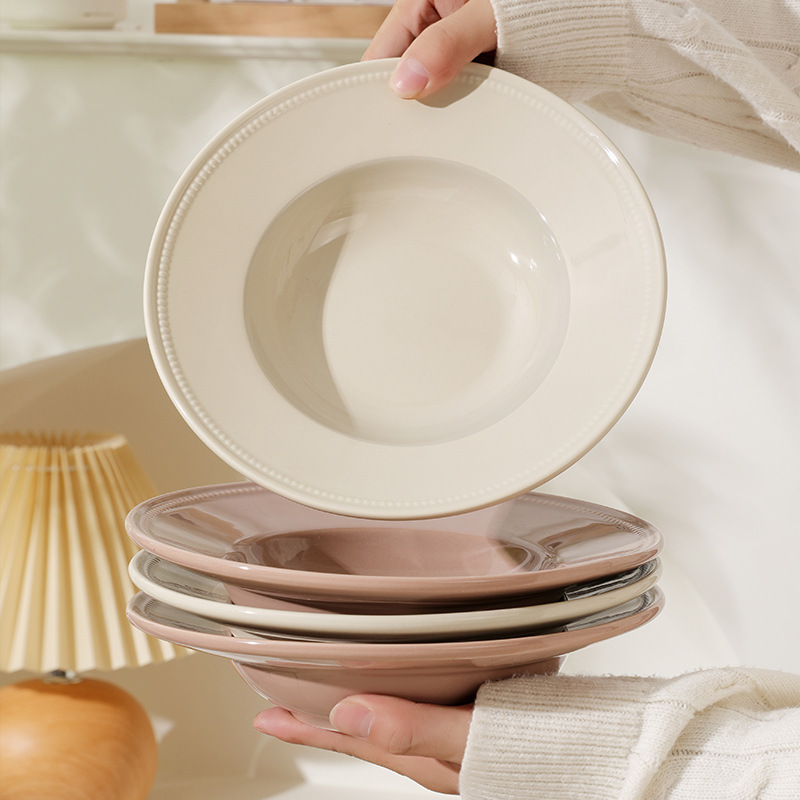 奶油风珍珠草帽盘纯色釉下彩高级感家用陶瓷菜碟轻奢碟子餐盘餐具
