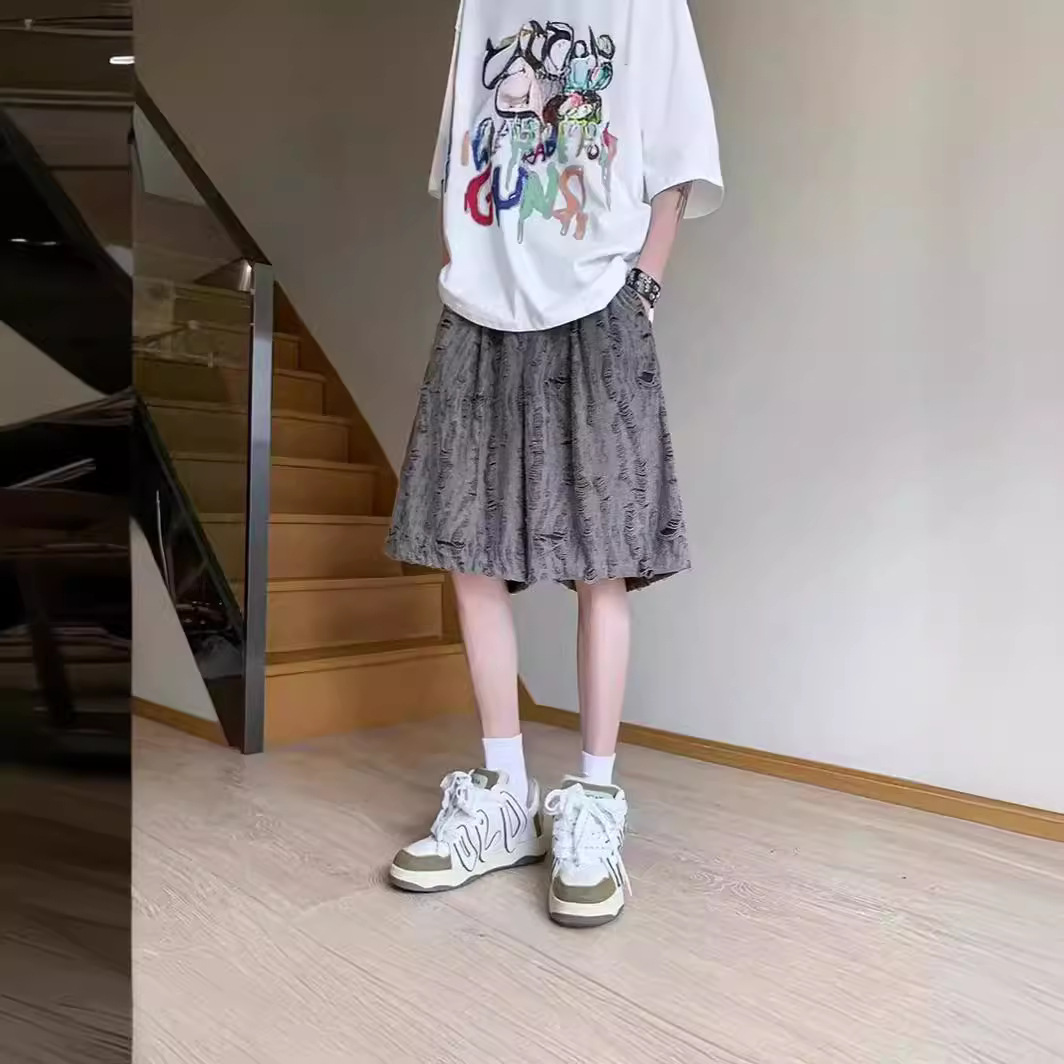 ins高街破洞休闲裤男士夏季冰丝外穿沙滩裤复古oversize宽松百搭