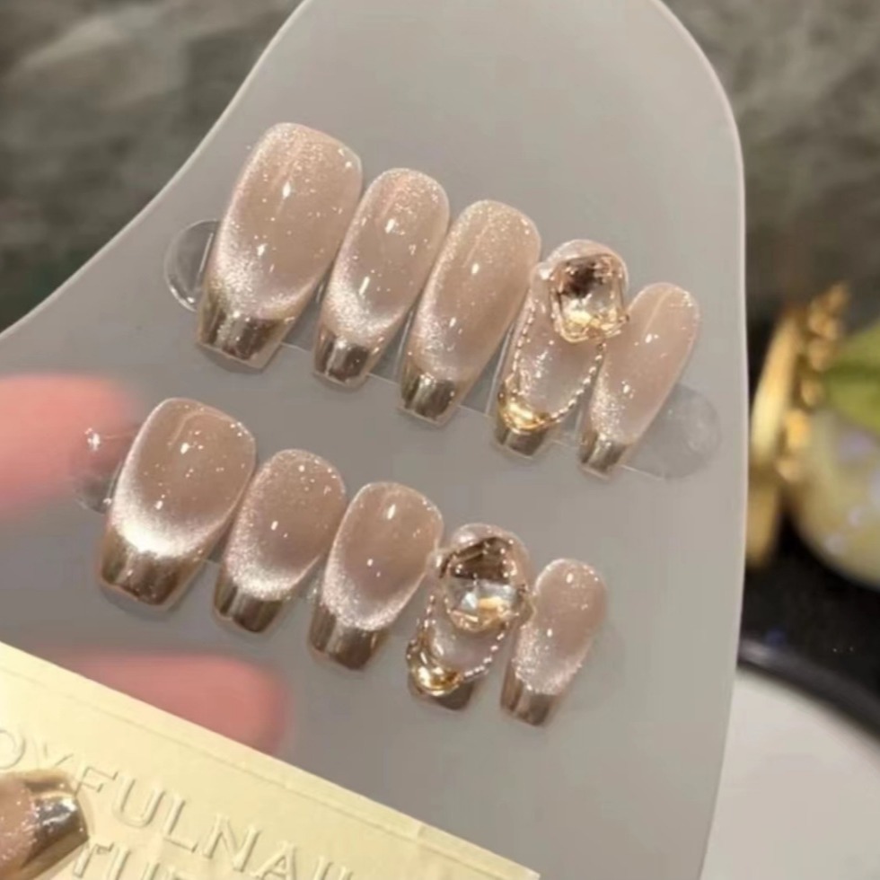 【梦巴黎】纯手工穿戴甲美甲假指甲贴片裸色猫眼魔镜法式爆款
