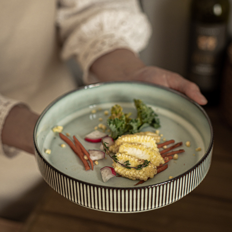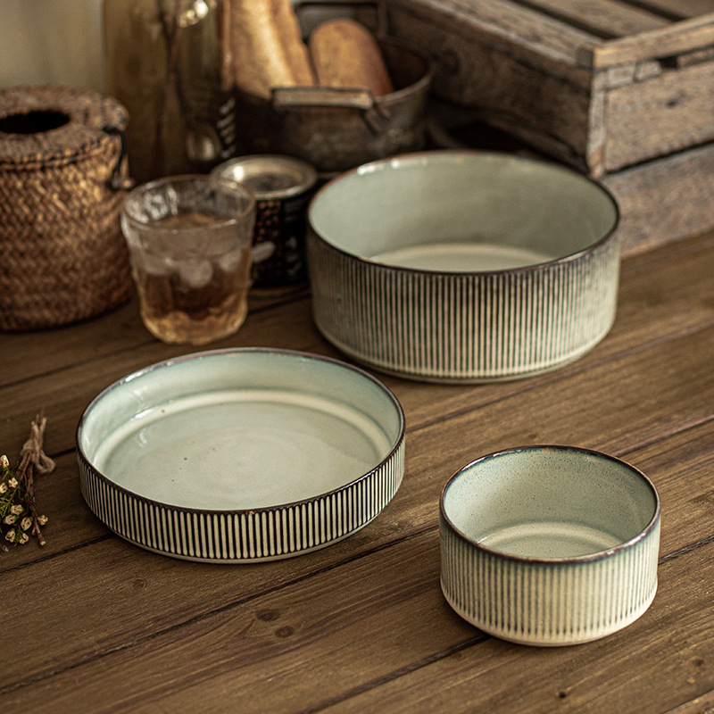【北欧小众多器型碗盘】网红百搭条纹碗碟创意陶瓷菜盘沙拉碗微瑕